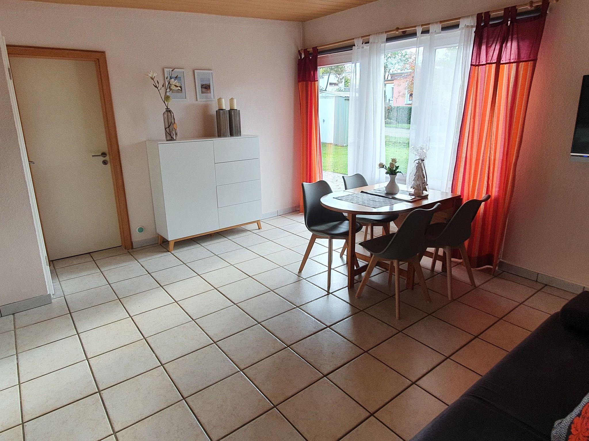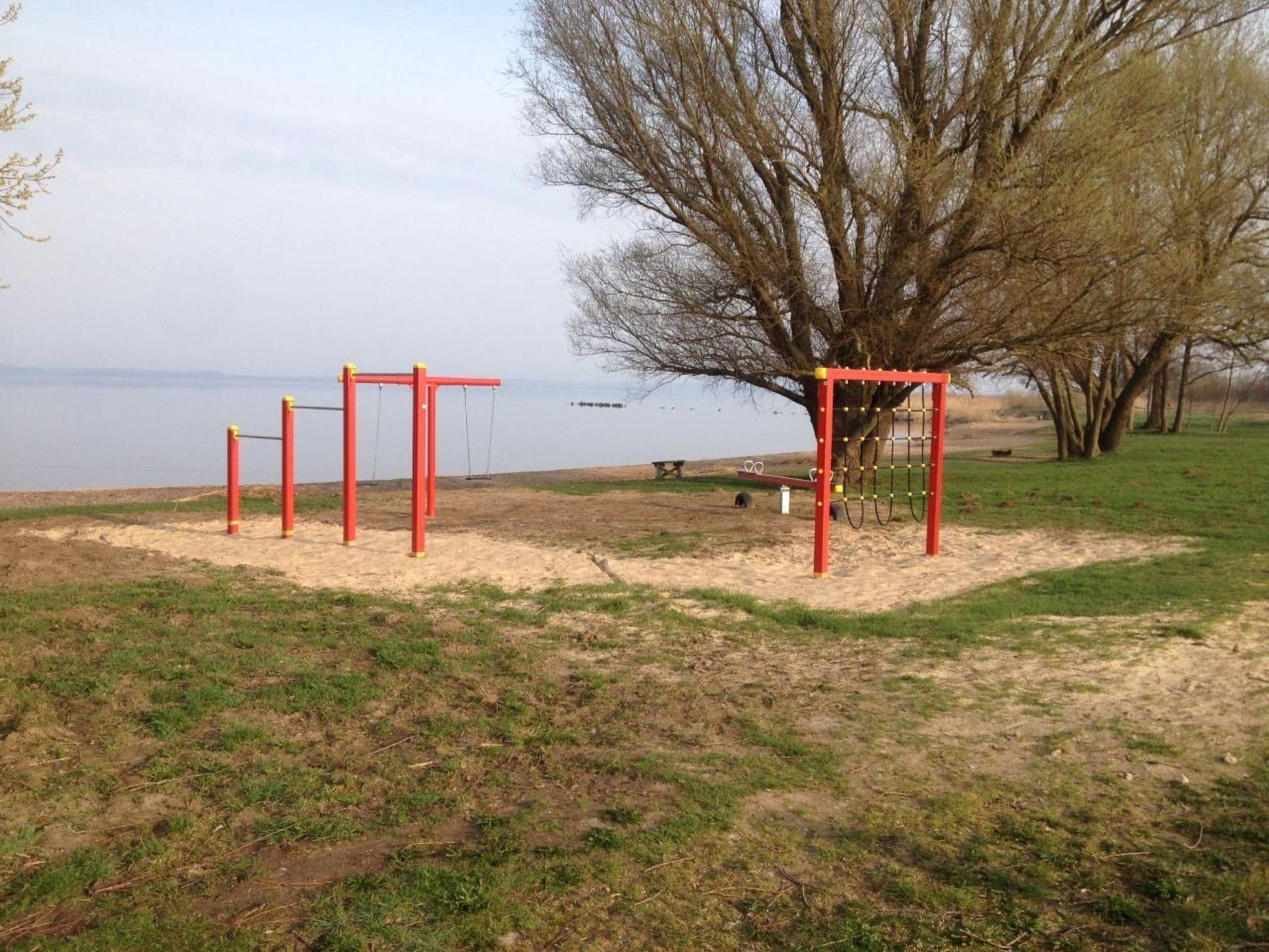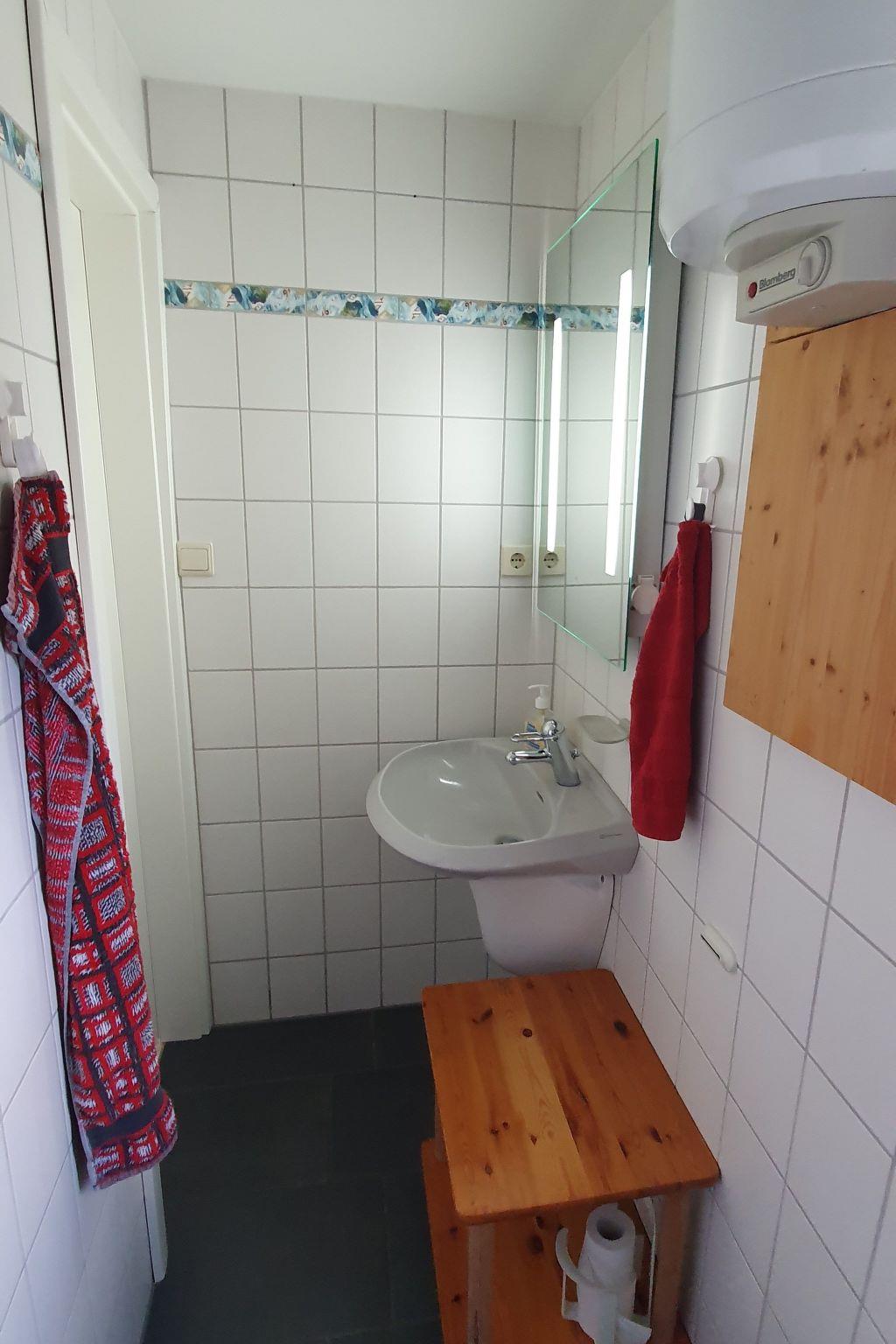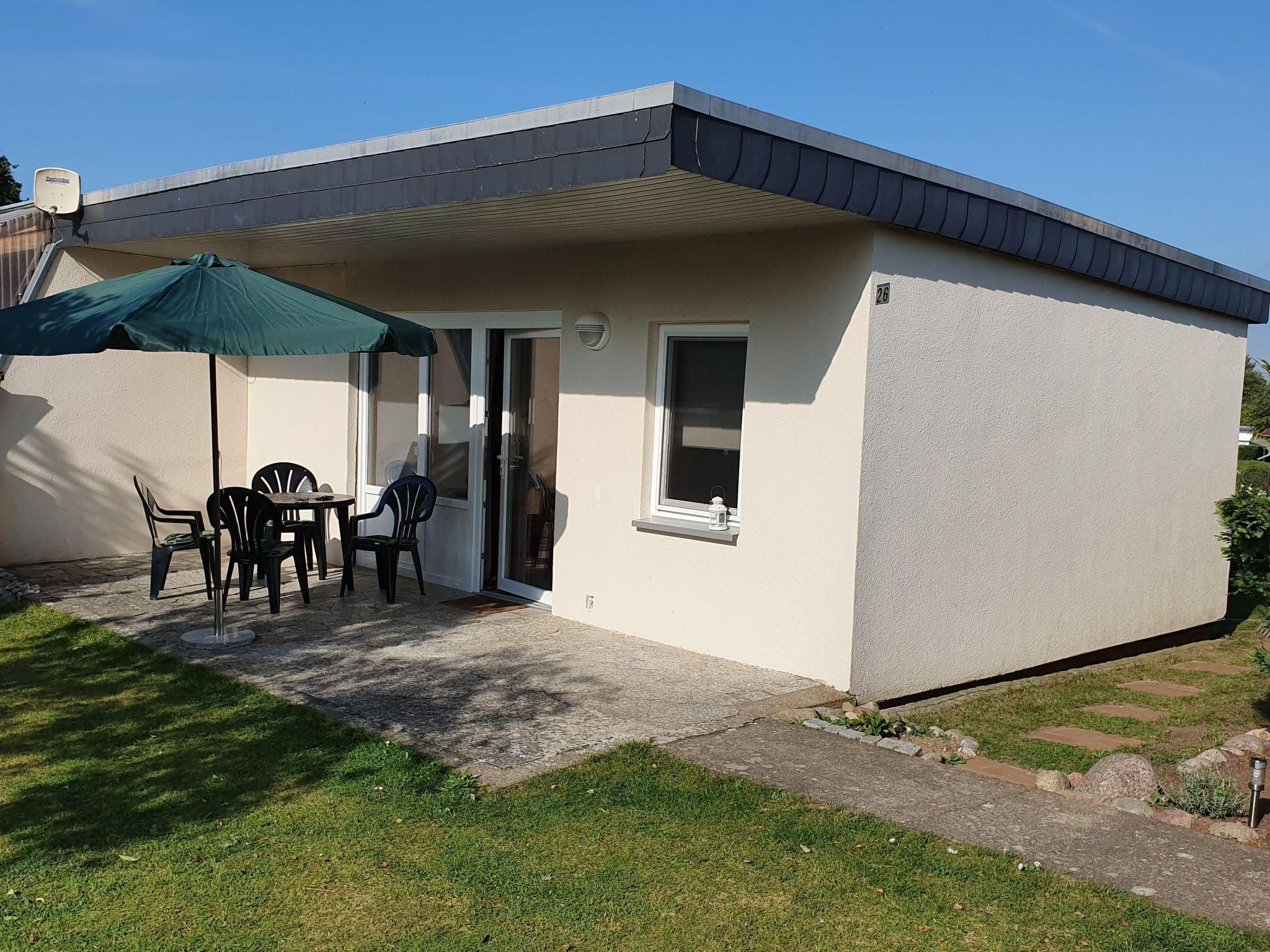 The living area of approx. 40m² is divided into a bedroom with 2 single beds of 0.8 x 2m, a living room with sofa bed and kitchenette, dining table with chairs and a TV corner, a bathroom with shower and WC. In the fenced garden in front of the house is the terrace with garden furniture and barbecue. A car parking space belongs to the house. On request, you can also bring your own boat (max. dimensions 1.80 x 5.00 metres). The house is equipped with crockery, pots and pans, toaster, dishwasher, coffee machine, oven, 4-plate electric cooker, fridge with freezer compartment, radio, TV. The beach is only a few minutes' walk away and is a great place to relax. The children can let off steam in the playground, which is part of the complex.