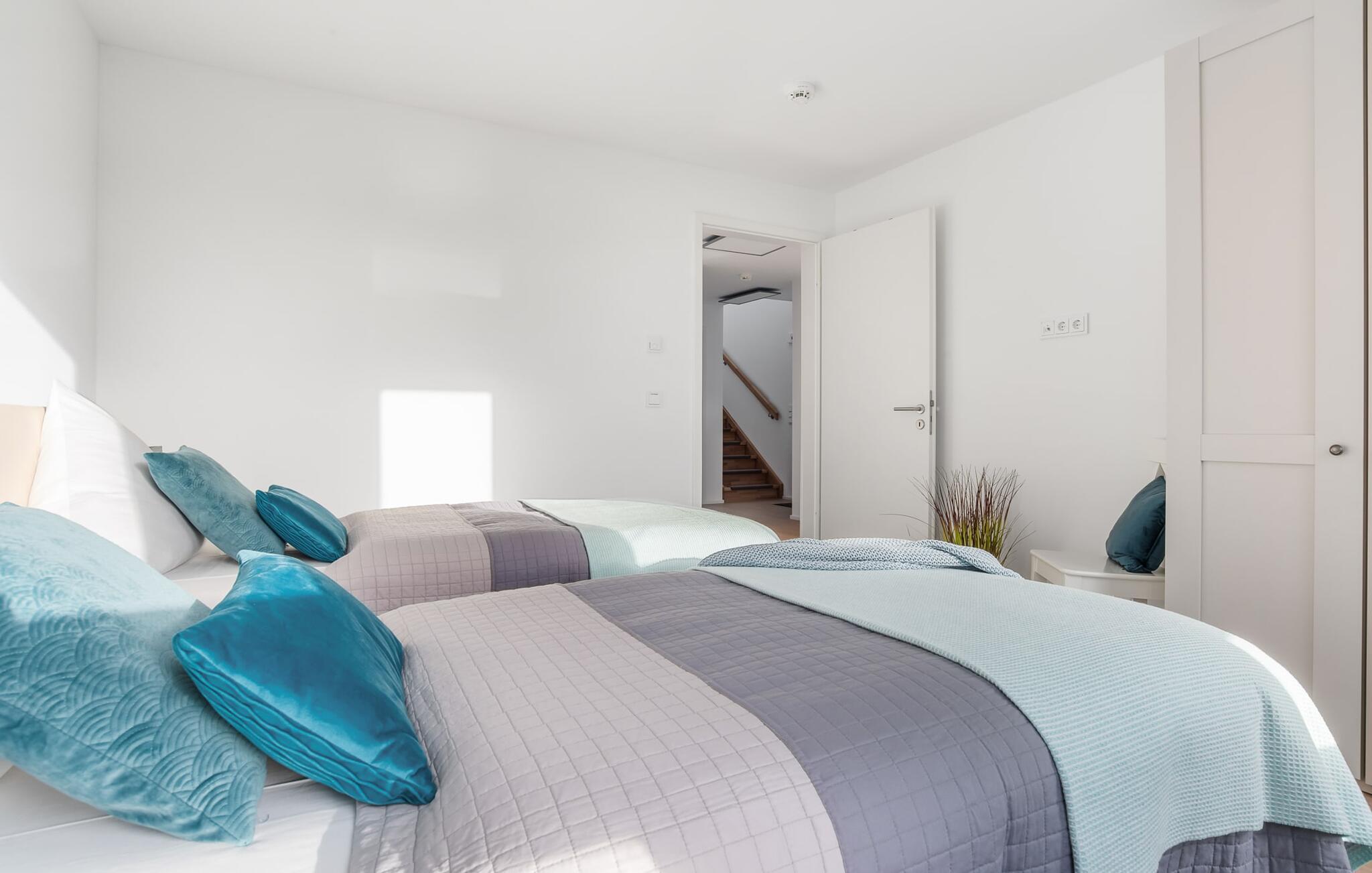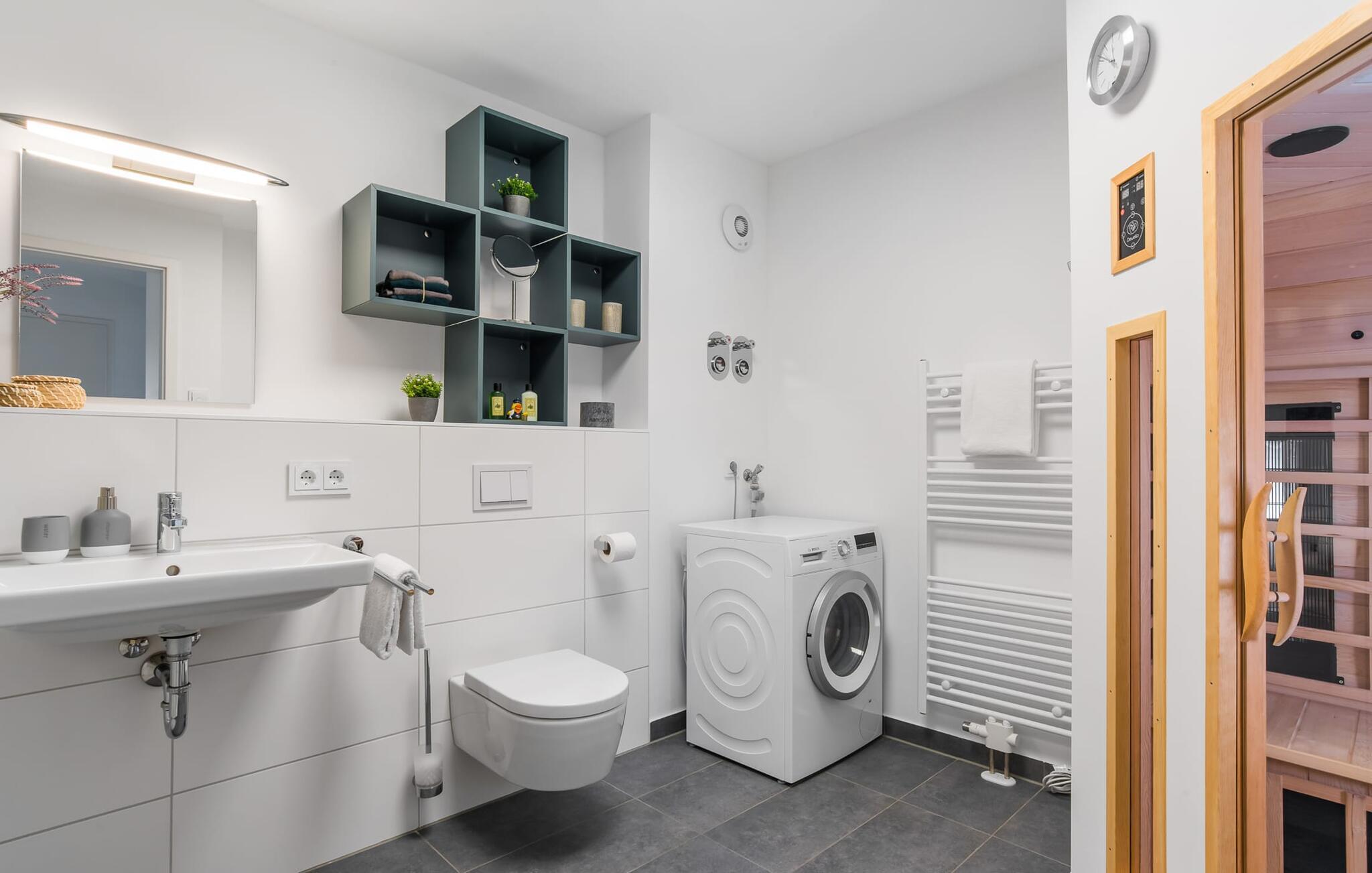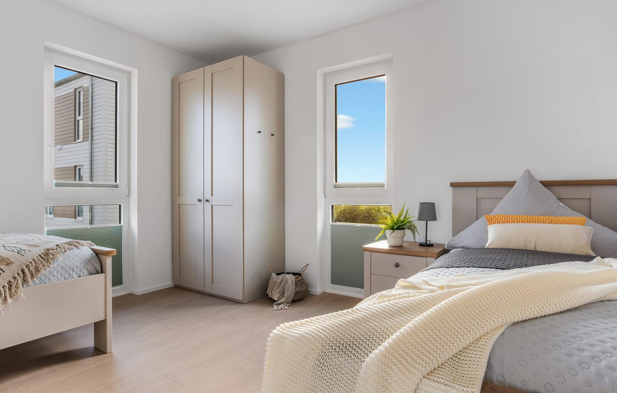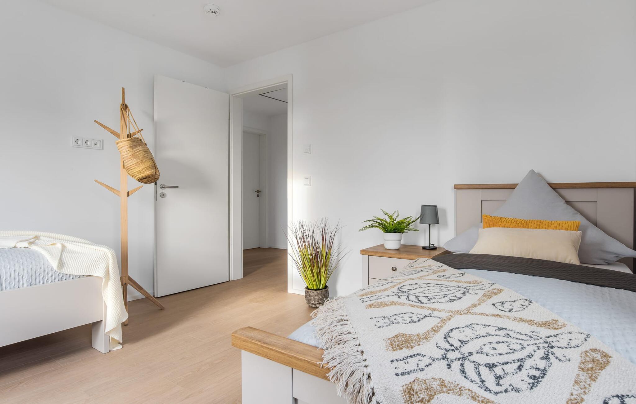 SOMMERWIND er en rummelig og rummelig maisonette ferielejlighed på 1. og 2. sal med direkte udsigt til de naturbevarende strandenge og marker. Sandstranden Weidefelder med kiosk, restaurant og strandstole ligger i gåafstand og er et attraktivt rejsemål på alle tider af året. Minigolfbanen med maritimt tema ligger også i umiddelbar nærhed og glæder både store og små. Når I træder ind i ferielejligheden på første sal, begynder nedbremsningen fra allerførste øjeblik. I er direkte i afslapningsområdet i SOMMERWIND. Lejlighedens tre soveværelser er placeret på denne etage. Uanset hvilket soveværelse I vælger, kan I være sikker på en afslappende søvn. Hvert af soveværelserne er udstyret med et fjernsyn. I det store soveværelse inviterer en stor dobbeltseng til at drømme. Skal I arbejde på en eller to småting, mens I er på ferie, er det nemt muligt her, da I finder et stort skrivebord med en ekstra skærm. Der er også et soveværelse med en lille dobbeltseng til rådighed. Det tredje soveværelse inviterer jer til at sove godt med to enkeltsenge. På denne etage er der også et veludstyret badeværelse med bruser i gulvniveau og infrarød sauna. En oase af velvære, der sikrer afslapning i hver sæson. En gang på anden sal lever SOMMERWIND op til sit navn. Her bydes I velkommen af gulv-til-loft vinduesfronten med den tilstødende terrasse med strandstol og udsigt til de naturbeskyttede strandenge. At komme ind og straks føle sig hjemme er én ting. At slappe af i den hyggelige opholdsstue, nyde naturens fred og ro ud af vinduet eller se tv er ren afslapning og afslapning! Der er også en in-house Netflix-adgang og en Bluetooth-boks til jeres underholdning. I den kolde årstid giver pejsen hyggelige timer. Med få enkle trin kan opholdsrummet omdannes til et ekstra soveplads (1,40 mx 2 m). Takket være den højkvalitets lamelramme kan I sove her, som I er på cloud nine. Det integrerede køkken er perfekt udstyret, og det er sjovt at lave mad sammen. Så nyd de færdige lækkerier på terrassen eller start en hyggelig grillaften... Det er ren ferie. Direkte fra opholdsområdet kommer man ind på den store terrasse med syd-vest orientering. Vender mod bagsiden med udsigt til de naturbevarende strandenge, marker og havet, er hyggelige timer garanteret. Et andet komplet badeværelse med badekar runder ideelt set hele pakken af til en afslappende ferie. Foran ferielejligheden finder I jeres egen parkeringsplads. Vores foretrukne sted: at se ud over markerne på terrassen og nyde SOMMERVINDEN... Bemærk venligst: OstseeResort Olpenitz er meget populært, og der bygges fortsat i parken. Ikke desto mindre kan I se frem til en 5-stjernet standard og et førsteklasses ophold. Byggeaktiviteterne kommer ikke til at forstyrre jer på ferien, og derfor gives der ikke yderligere afslag i prisen.
