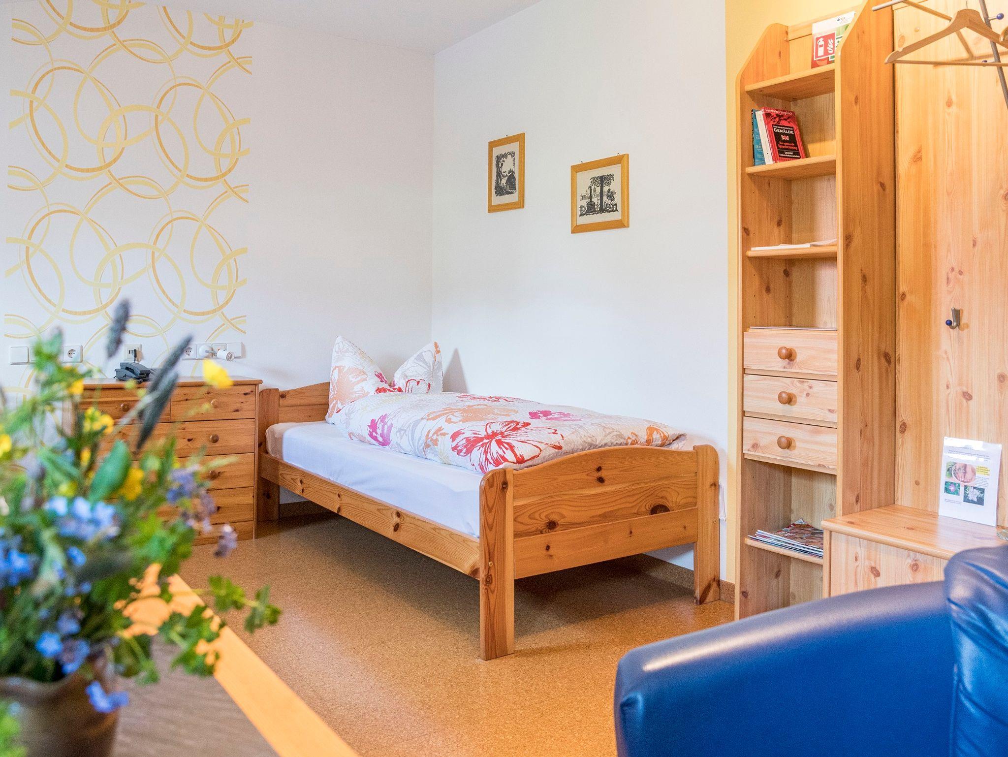 Unser Zweibettzimmer ist komfortabel ausgestattet mit Dusche/WC, Waschbecken, Handtuchtrockner,, Fön, Kosmetikartikeln sowie Flachbild-Sat-TV, Kommode, Schrank, Garderobe, Sitzecke mit Tisch und zwei Sesseln, 2 Betten mit verstellbaren Lattenrosten, Telefon, Wlan und einer Teestation.