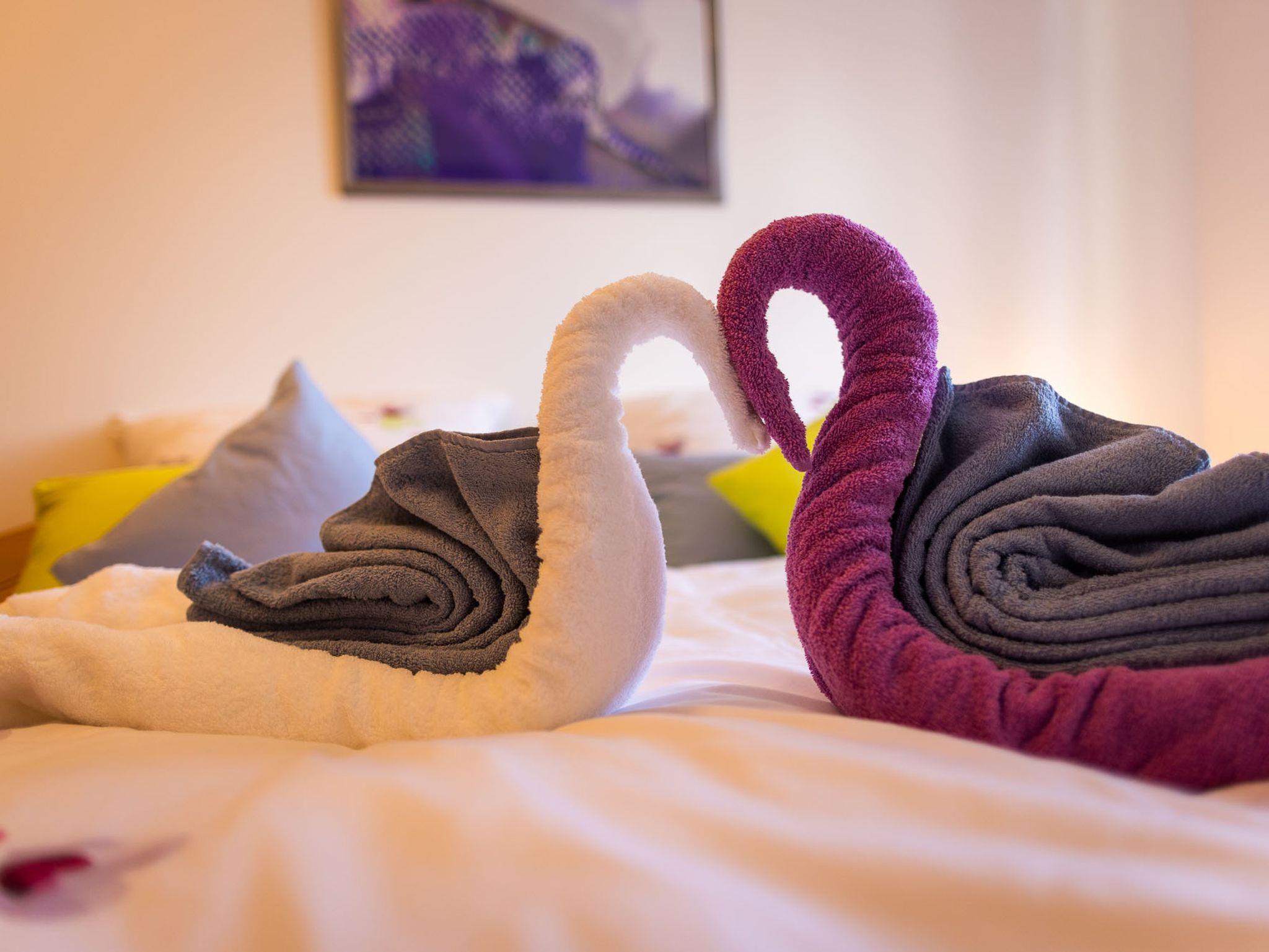 In den beiden Schlafzimmern befinden sich jeweils 1 Doppelbett und ein großer Kleiderschrank mit integriertem ganz Körperspiegel, sowie eine vielfältige Kissenauswahl.