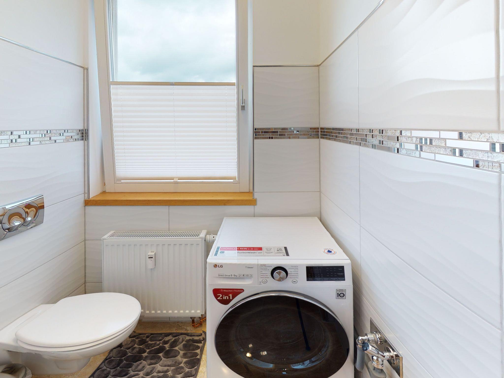 Natürlich steht ihnen ein eigener moderner Wasch-Trockner zur verfügung.