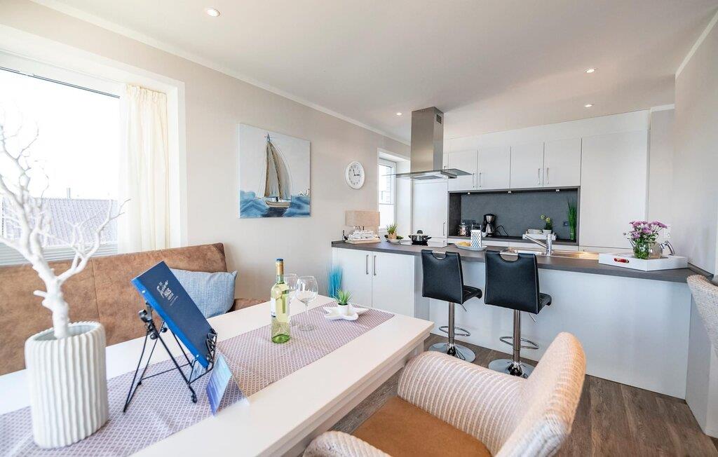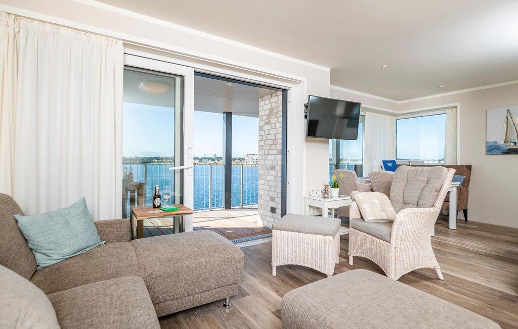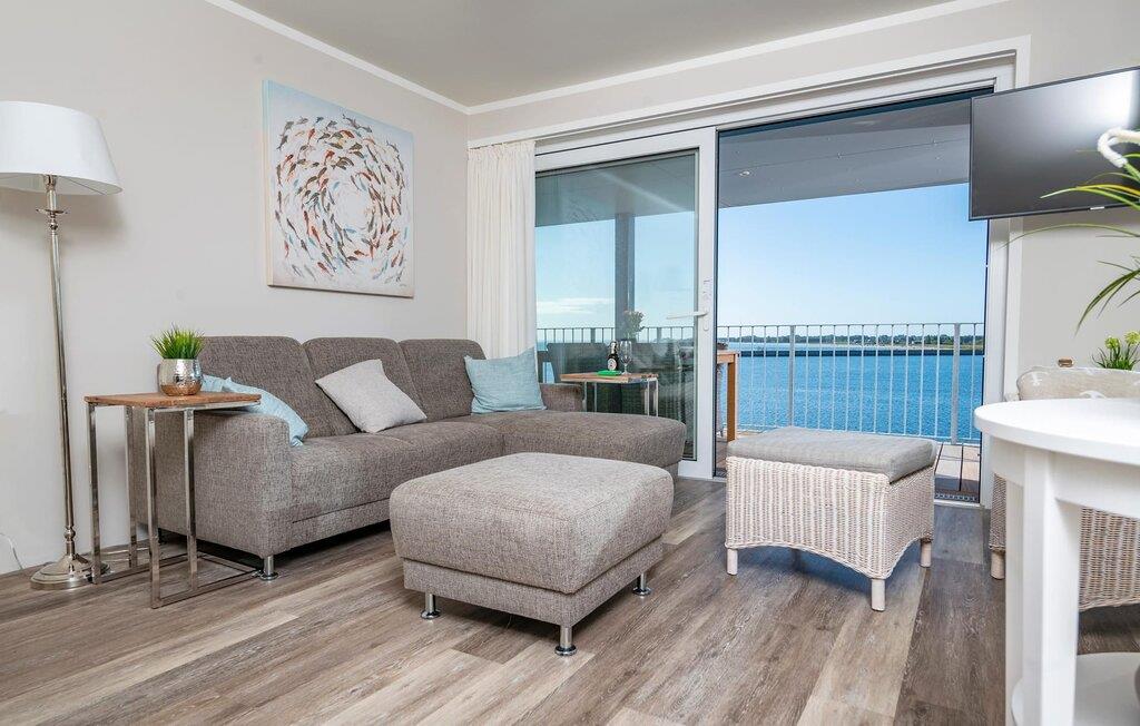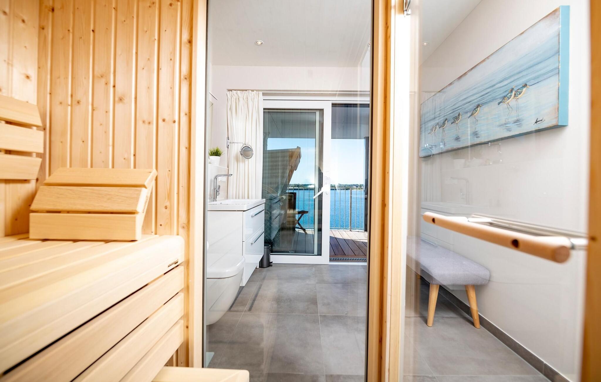 Denne ekstraordinære ferieejendom ligger midt i Østersøen, på et smalt næs mellem Østersøen på den ene side og sejler- og sportsbådshavnen i Baltic Sea Resort Olpenitz på den anden. Den rummelige ferielejlighed i stueetagen ligger på anden sal og kan nemt nås med elevator. Placeret over alt, er der en spektakulær udsigt over vandet gennem gulv til loft vinduer, en havnebiograf garanteret. Og mens den sydvendte terrasse lige ved vandet lover sol hele dagen lang, tilbyder sauna, pejs og gulvvarme hyggelig hygge i hver sæson. Vindfanget af glas sikrer komfort på altanen selv i dårligt vejr. Opholds- og spisestuen i åbent plan med det komfortable siddeområde og det store spisebord inviterer jer til at blive hængende foran den knitrende pejs. Den panoramiske havnefront byder på ferieunderholdning med skibe, der sejler forbi. Køkken-alrummet er fuldt udstyret og kan bruges til at tilberede lækre feriemåltider. Det fuldt udstyrede badeværelse med bruser i gulvniveau sikrer maritime wellness-øjeblikke, da I kan slappe dybt af i saunaen med udsigt over vandet. Et gæstetoilet giver ekstra komfort. En privat parkeringsplads og et cykelskur er placeret direkte foran huset. Ferielejligheden Sonnendeck er en lejlighed på anden sal. Vores favoritsted: Nyd solen på terrassen, se havnebiografen og bare slap af. Bemærk venligst: OstseeResort Olpenitz er meget populært, og der bygges fortsat i parken. Ikke desto mindre kan I se frem til en 5-stjernet standard og et førsteklasses ophold. Byggeaktiviteterne kommer ikke til at forstyrre jer på ferien, og derfor gives der ikke yderligere afslag i prisen.