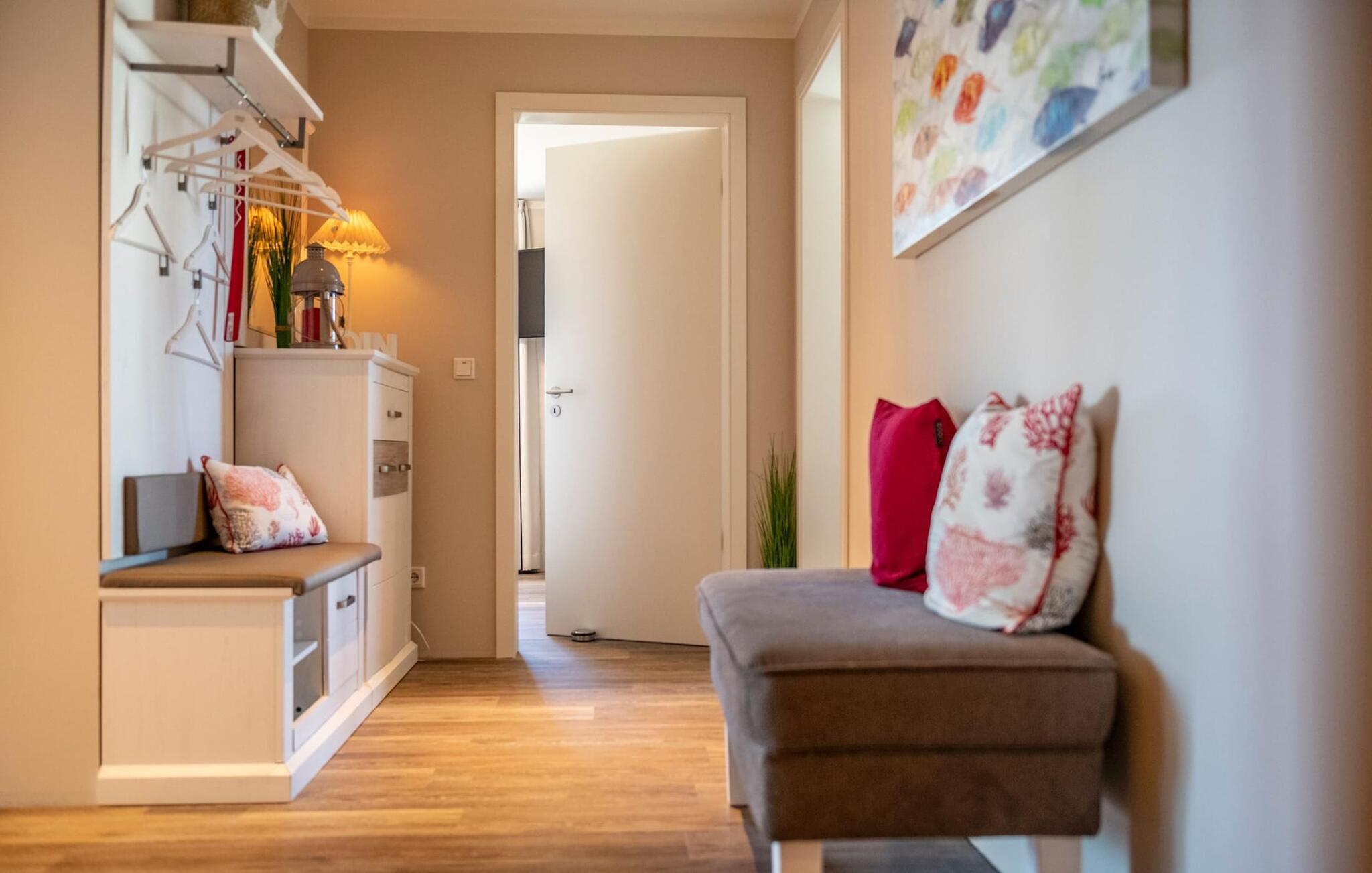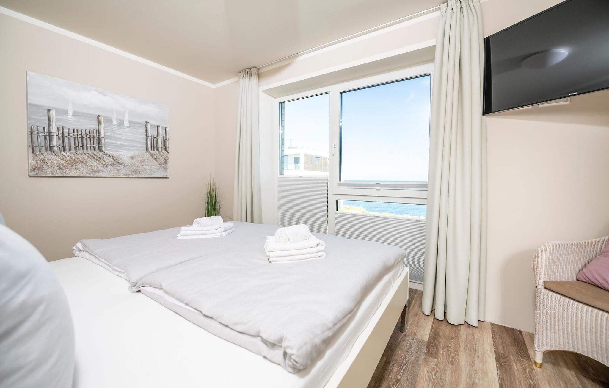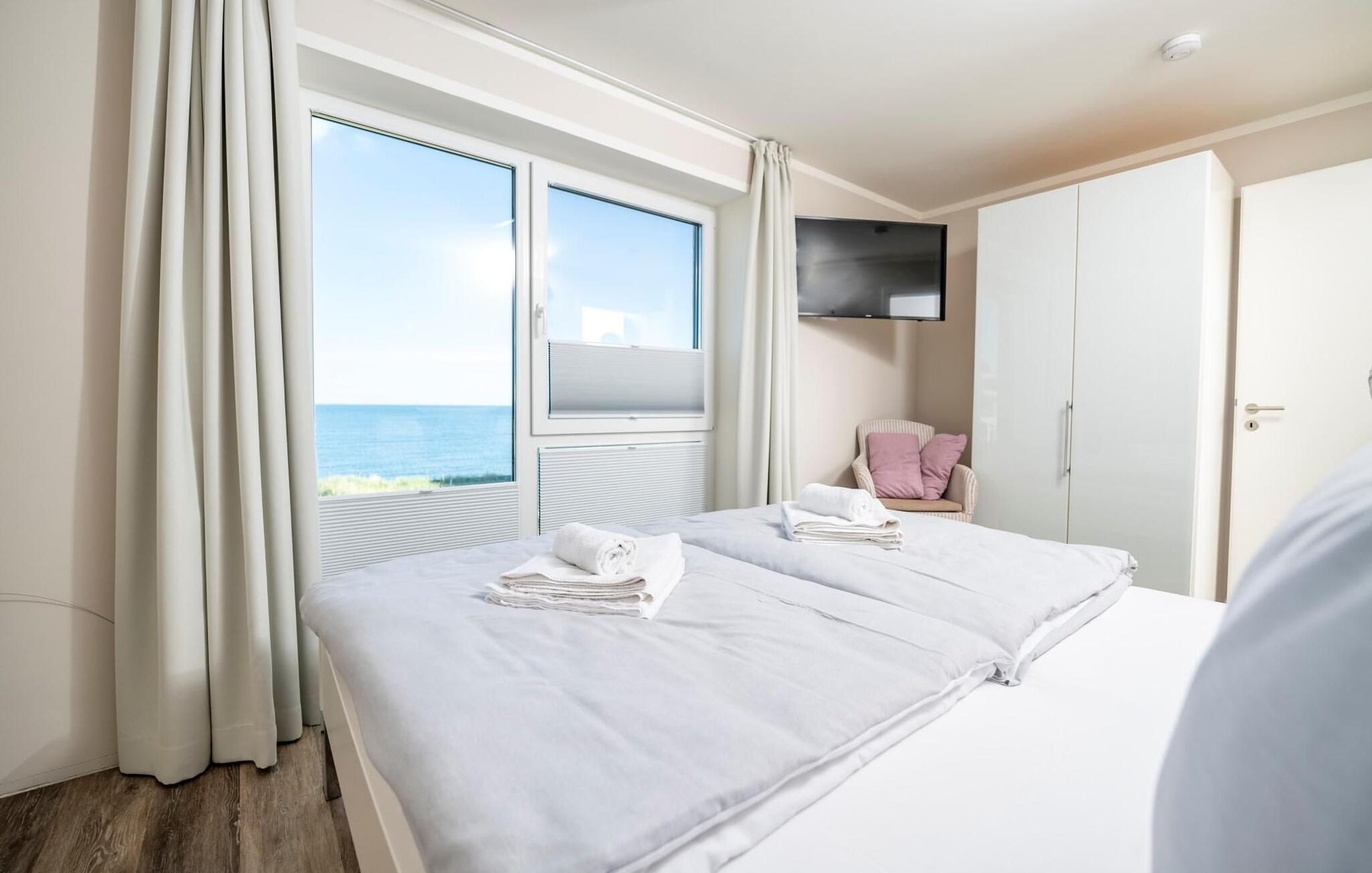Denne ekstraordinære ferieejendom ligger midt i Østersøen, på et smalt næs mellem Østersøen på den ene side og sejler- og sportsbådshavnen i Baltic Sea Resort Olpenitz på den anden. Den rummelige ferielejlighed i stueetagen ligger på anden sal og kan nemt nås med elevator. Placeret over alt, er der en spektakulær udsigt over vandet gennem gulv til loft vinduer, en havnebiograf garanteret. Og mens den sydvendte terrasse lige ved vandet lover sol hele dagen lang, tilbyder sauna, pejs og gulvvarme hyggelig hygge i hver sæson. Vindfanget af glas sikrer komfort på altanen selv i dårligt vejr. Opholds- og spisestuen i åbent plan med det komfortable siddeområde og det store spisebord inviterer jer til at blive hængende foran den knitrende pejs. Den panoramiske havnefront byder på ferieunderholdning med skibe, der sejler forbi. Køkken-alrummet er fuldt udstyret og kan bruges til at tilberede lækre feriemåltider. Det fuldt udstyrede badeværelse med bruser i gulvniveau sikrer maritime wellness-øjeblikke, da I kan slappe dybt af i saunaen med udsigt over vandet. Et gæstetoilet giver ekstra komfort. En privat parkeringsplads og et cykelskur er placeret direkte foran huset. Ferielejligheden Sonnendeck er en lejlighed på anden sal. Vores favoritsted: Nyd solen på terrassen, se havnebiografen og bare slap af. Bemærk venligst: OstseeResort Olpenitz er meget populært, og der bygges fortsat i parken. Ikke desto mindre kan I se frem til en 5-stjernet standard og et førsteklasses ophold. Byggeaktiviteterne kommer ikke til at forstyrre jer på ferien, og derfor gives der ikke yderligere afslag i prisen.