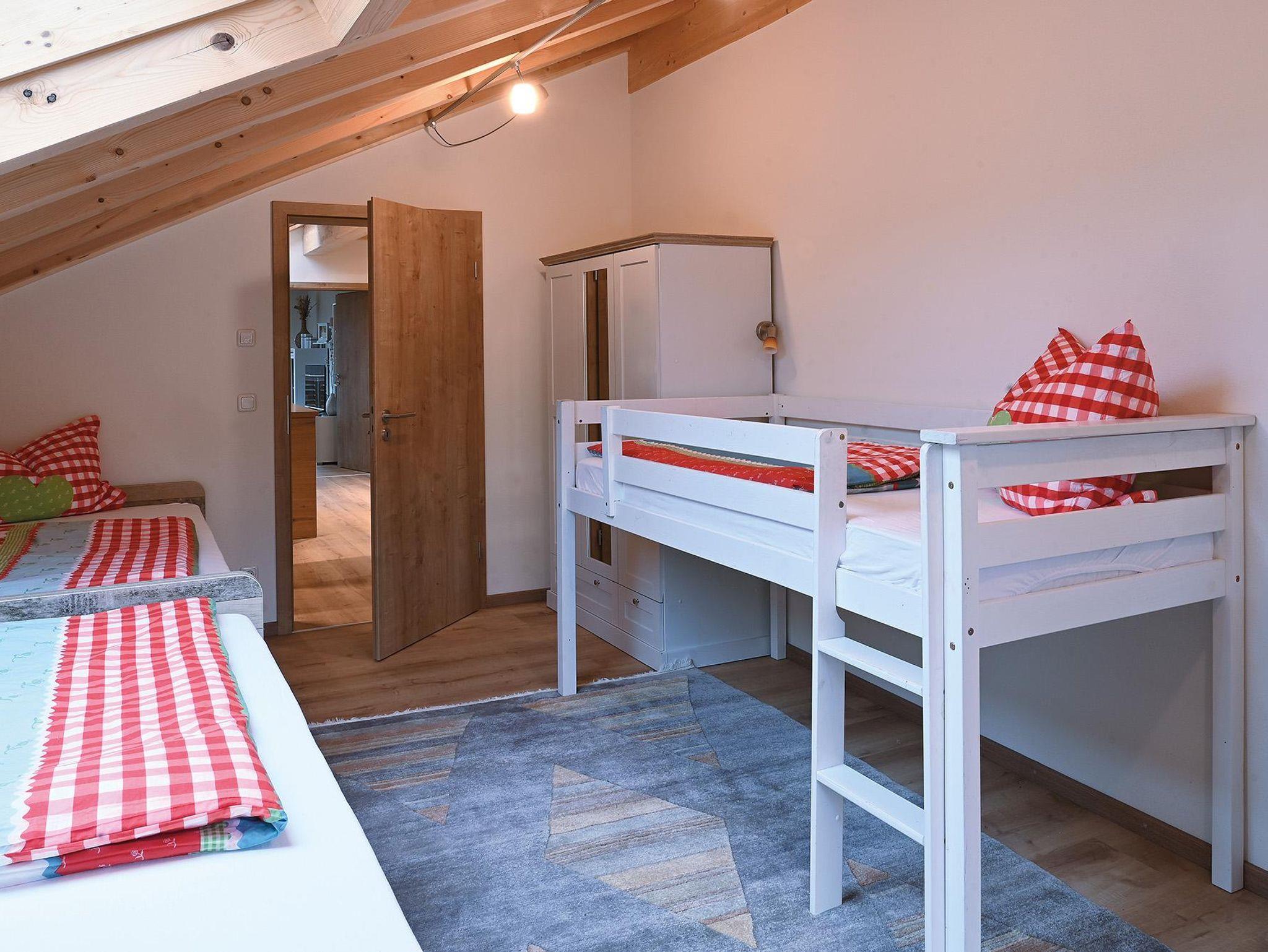 Unsere neue, großzügig gestaltete Ferienwohnung mit einer Größe von 110 qm wird Sie begeistern.Die lichtdurchflutete und stilvoll eingerichtete Wohnung im Dachgeschoss mit 5 Räumen bietet reichlich Platz für bis zu 7 Personen. Die zentrale Wohnküche mit großer Sitzecke und technisch voll ausgestattete Küche lässt keine Wünsche offen. Im gemütlichen Wohnzimmer können Sie ihre erlebnisreichen Urlaubstage gemütlich ausklingen lassen und 2 Schlafzimmer und 1 Kinderzimmer mit großen Betten bieten Erholung in der Nacht. Drei große Balkone mit Sitzmöbeln und Ausblick in die umliegende Bergwelt runden diesen hohen Wohnkomfort in unserer Ferienwohnung „Lug ins Land“ zu einem unvergesslichen Urlaub ab.