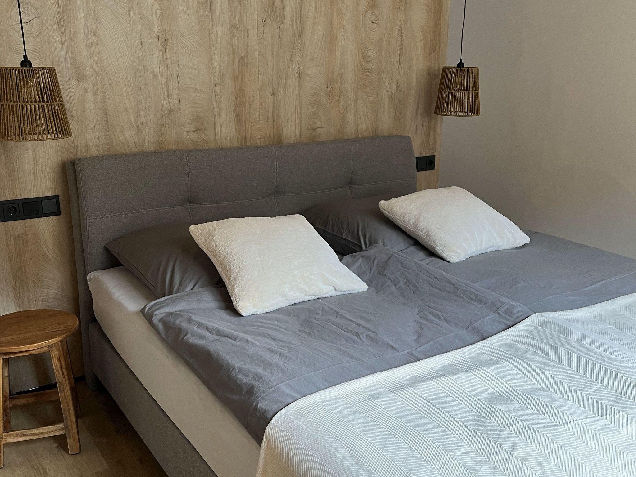 Die Werkstatt- Suite erwartet euch in unserem Dorfresort Wyzenborne. Die Suite mit ca. 100 qm und Premium-Ausstattung: Drei Zimmer, Ein Schlafzimmer mit Boxspringbett, ein Schlafzimmer mit freistehender Badewanne und Boxspringbett, Schreibtische und eingebaute Tresore. Gemütliche Sitzecke mit Flat-TV und Radio, moderne Landküche mit Geschirrspüler, Bad mit Regendusche und Fön, separates WC. Freies W-LAN. Terrasse an der Wohnung. Leistungen inklusive: Bezogene Betten, Handtuchpaket, Küchenpaket (Spülmittel und Label, Tabs, Küchenrolle).