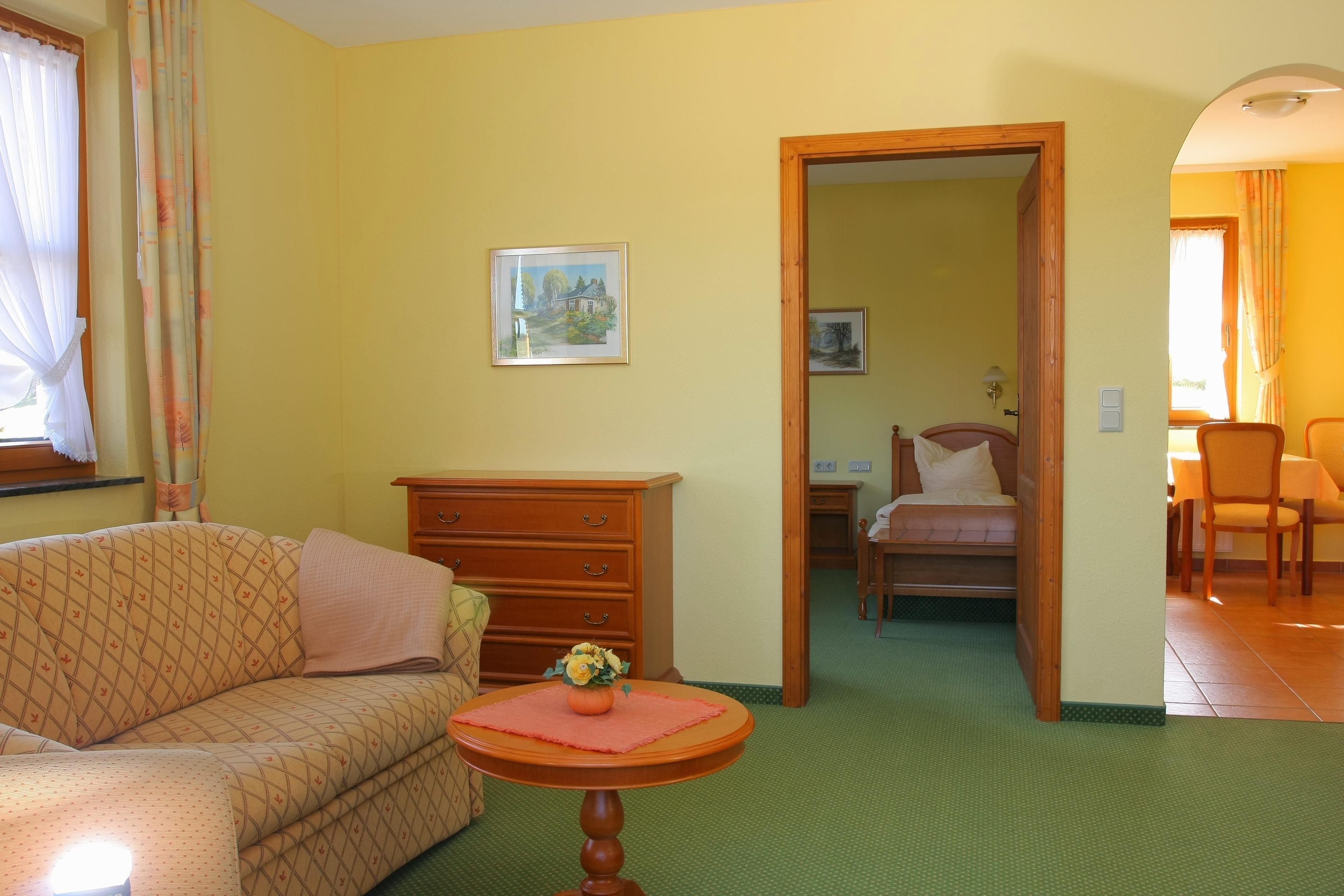 Ein Wellnessbereich mit Ruheraum, Erlebnisdusche, Fußwärmebecken, Sauna und Dampfbad steht allen Gästen in der Zeit von 16:00 Uhr bis 18:30 Uhr kostenlos zur Verfügung. Der Fitnessraum ist ständig zugänglich. Kostenfreie Parkmöglichkeiten befinden sich direkt vor dem Haus. Hier können sie auch ihr Elektroauto nachhaltig mit einer Wallbox aufladen. Eine Gaststätte ist ca. 100 Meter entfernt wo sie auch vorab Frühstück, Abendessen oder Halbpension (3-Gänge- Wahlmenü) buchen können