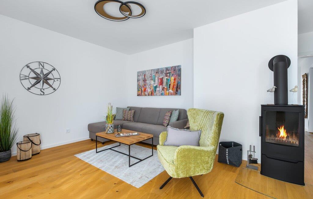 Denne skønne ferielejlighed til fire personer byder på alt, hvad man kan ønske sig til en ferie ved Østersøen. Beliggende direkte ved Østersøen er det kun et stenkast til Weidefelder sandstrand. Udover solbadning og svømning kan I også hygge jer i HUMMER-restauranten. Hvis stranden ikke er populær, kan I nå den populære Adventure Golf på få minutters gang. SOUNDS OF THE SEA er moderne, nordisk og indrettet med masser af ægte træ og parketgulvet i alle rum sikrer, at I føler jer godt tilpas fra første øjeblik. Vinduesfronten fra gulv til loft i den åbne stue/alrum tilbyder en betagende udsigt over den brede Østersø og sikrer vandbiograf hele dagen uden at blive kedelig. Træd ind på den tilstødende balkon og duft ikke kun den friske havluft, men lyt også til de lovede LYDE AF HAVET. Det hyggelige sofahjørne med TV og pejs inviterer til afslapning og gulvvarmen sørger for, at der er hyggeligt selv i den kølige årstid. Det lyse, integrerede køkken tilbyder selv kokkefagfolk alt, hvad de behøver for at tilberede lækre måltider, som derefter kan nydes sammen på balkonen med uendelig udsigt over vandet. De to soveværelser er hver udstyret med en dobbelt boxmadrasser og et fjernsyn, så en afslappende søvn er garanteret. En anden altan inviterer jer til at nyde en sundowner med udsigt over det store havnebassin, inklusive betagende solnedgange. Bruserummet med brusebad i gulvniveau lader heller intet tilbage at ønske og har alt hvad I behøver for en vellykket start på en ny feriedag. For at komme til ferieidyllen fra den underjordiske parkeringsplads (indgangshøjde: 2m), kan I enten vælge den sporty mulighed og bruge trappeopgangen eller komme ind i den tilgængelige elevator. Vores favoritsted: At lytte til HAVETS LYDE på balkonen og nyde den fænomenale udsigt over vandet... Bemærk venligst: OstseeResort Olpenitz er meget populært, og der bygges fortsat i parken. Ikke desto mindre kan I se frem til en 5-stjernet standard og et førsteklasses ophold. Byggeaktiviteterne kommer ikke til at forstyrre jer på ferien, og derfor gives der ikke yderligere afslag i prisen.