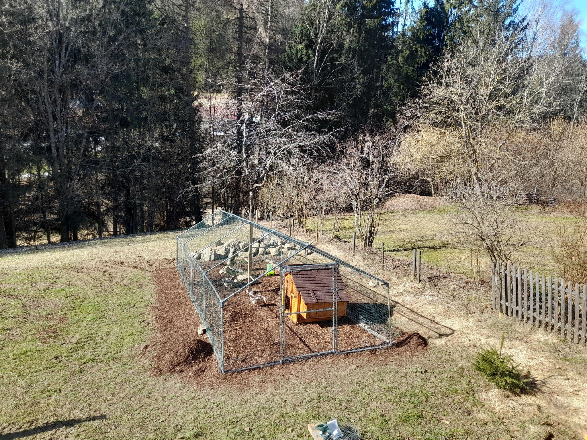 A family atmosphere in three comfortable log chalets. Largely self-sufficient energy supply with photovoltaic systems, infrared heating and Swedish stoves. Firewood comes from the property's small forest with a natural pond and stream. From approximately May 24, a chicken coop with outdoor enclosure will be available. Children can pet and feed the chickens and collect their own eggs. Small, child friendly resort, built in 2022. 3 houses in the residence. In the district of Mühlberg 2 km from the centre of Spiegelau, on a slope. For shared use: property 6'000 m2 with meadow, natural pond, swimming pool round (8 m diameter, seasonal availability: 15.May. - 30.Sep.). Patio. In the house: sauna, bicycle rental. Bread roll service. Shop 1 km, supermarket 2.5 km, bus stop "Palmberg" 1 km, railway station "Spiegelau" 3.5 km, outdoor swimming pool 2.5 km. Walking paths from the house 10 m, sled run 1 km. Nearby attractions: Nationalparkzentrum Neuschönau 17 km, Baumwipfelpfad 17 km, Passau 45 km. Well-known ski regions can easily be reached: Mitterfirmiansreut 31 km, Geißkopf 22 km, Großer Arber 37 km. Hiking paths: Nationalpark Bayerischer Wald 3 km. Please note: Loading and unloading of baggage is possible at the holiday house.