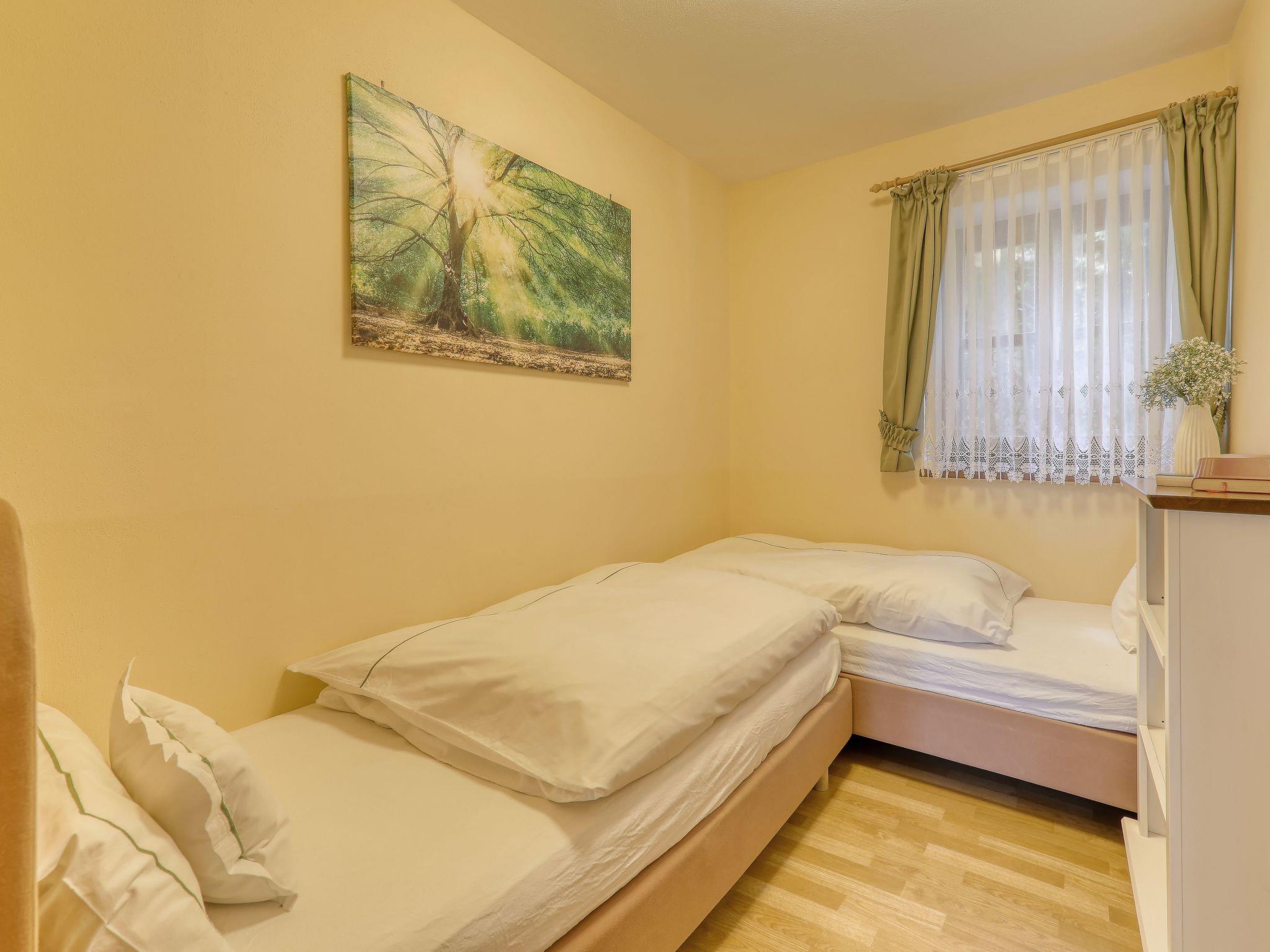 Ground floorCentral heatingExtra wood-burning stove1 accommodation unit of this typeDouble bed 1.80x2.00m, open foot end, barrel pocket spring core hardness grade 4, duvets, 3 pillows per person (80x80, 80x40, 40x40), wardrobe, chest of drawers. Bedroom is east sideChildren's room, 2 single beds 90x190, duvets, 2 pillows (80x40, 40x40)Sofa bed Living room with slatted frame and mattress 160x200Dining table for 6 peopleLiving area with satellite TV, stereo and furnished terrace east sideWell-behaved dogs allowedKitchen with dishwasher, fridge with freezer compartment, 4-ring hob, oven, extractor bonnet, sink, pots, pans, filter coffee machineBathroom: Shower tray with shower curtain, washbasinseparate WCWardrobe