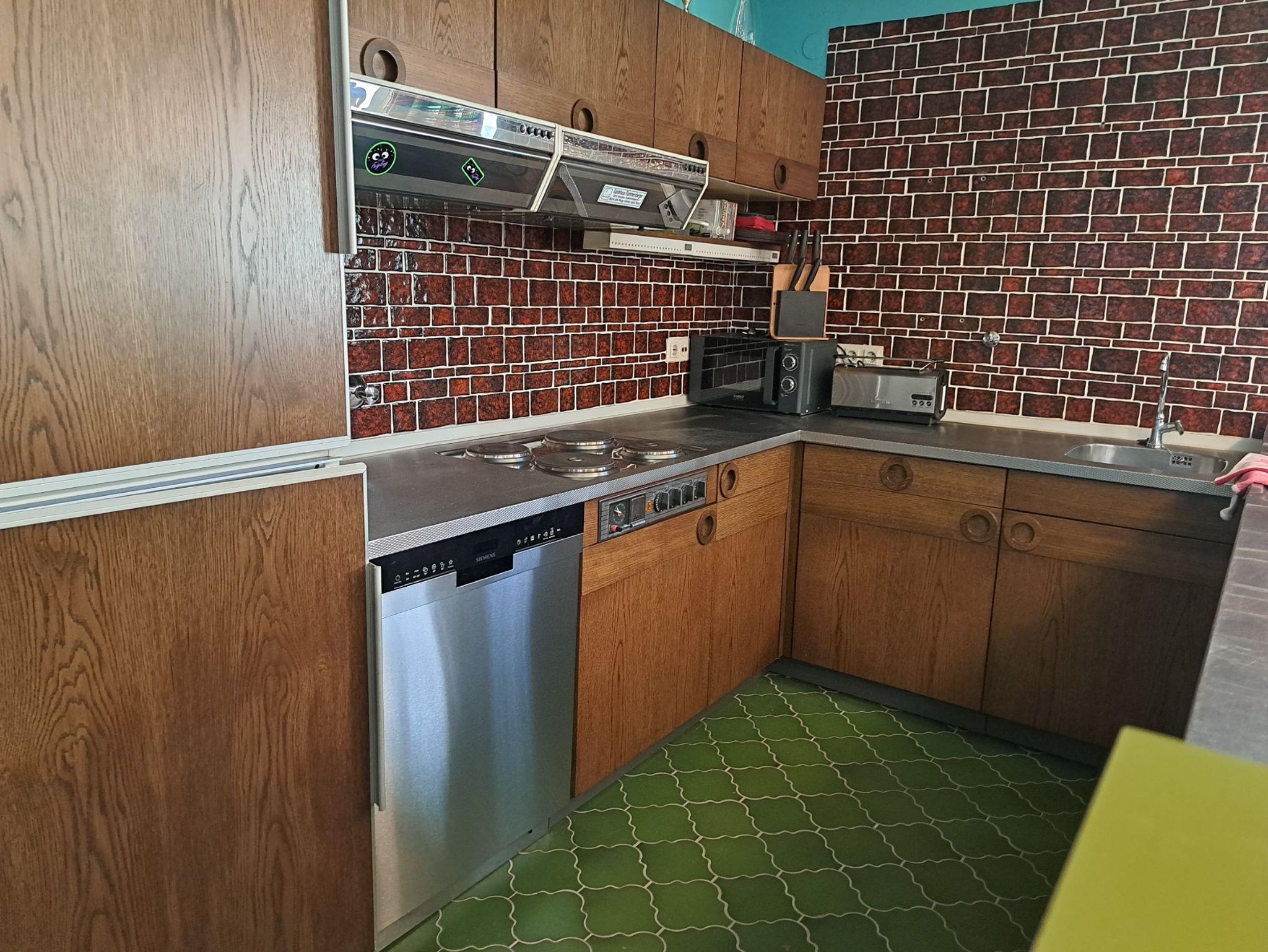 Die Küche zur Selbstversorgung befindet sich im Nebengebäude direkt neben dem Gästehaus. Sie verfügt über einen Elektroherd, zwei Kaffeemaschinen, Mikrowelle, Wasserkocher, Toaster, Kühl- und Gefrierschrank, sowie über eine zusätzliche Kühltheke für Getränke.