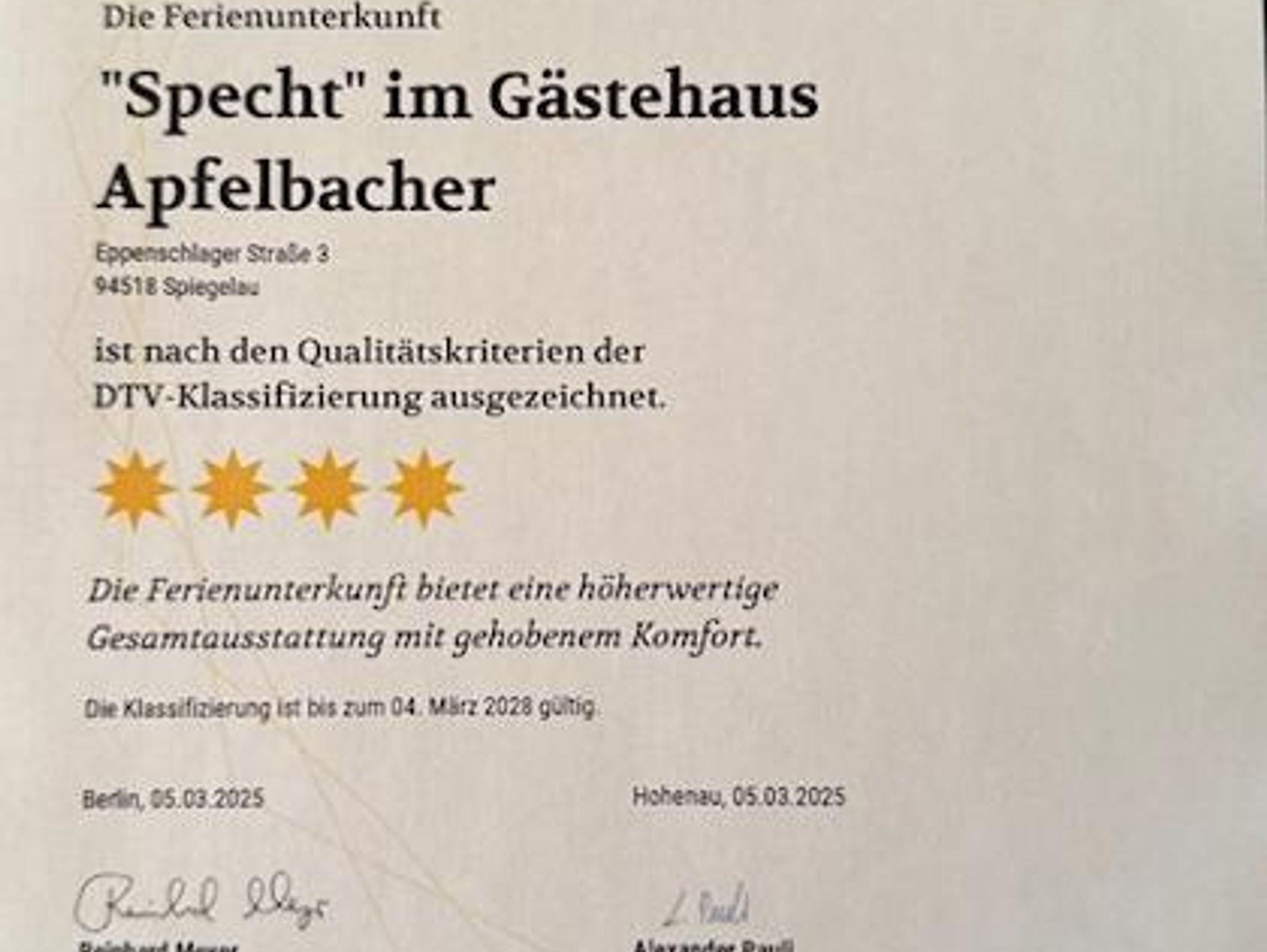 Gästehaus Apfelbacher, Ferienwohnung Specht