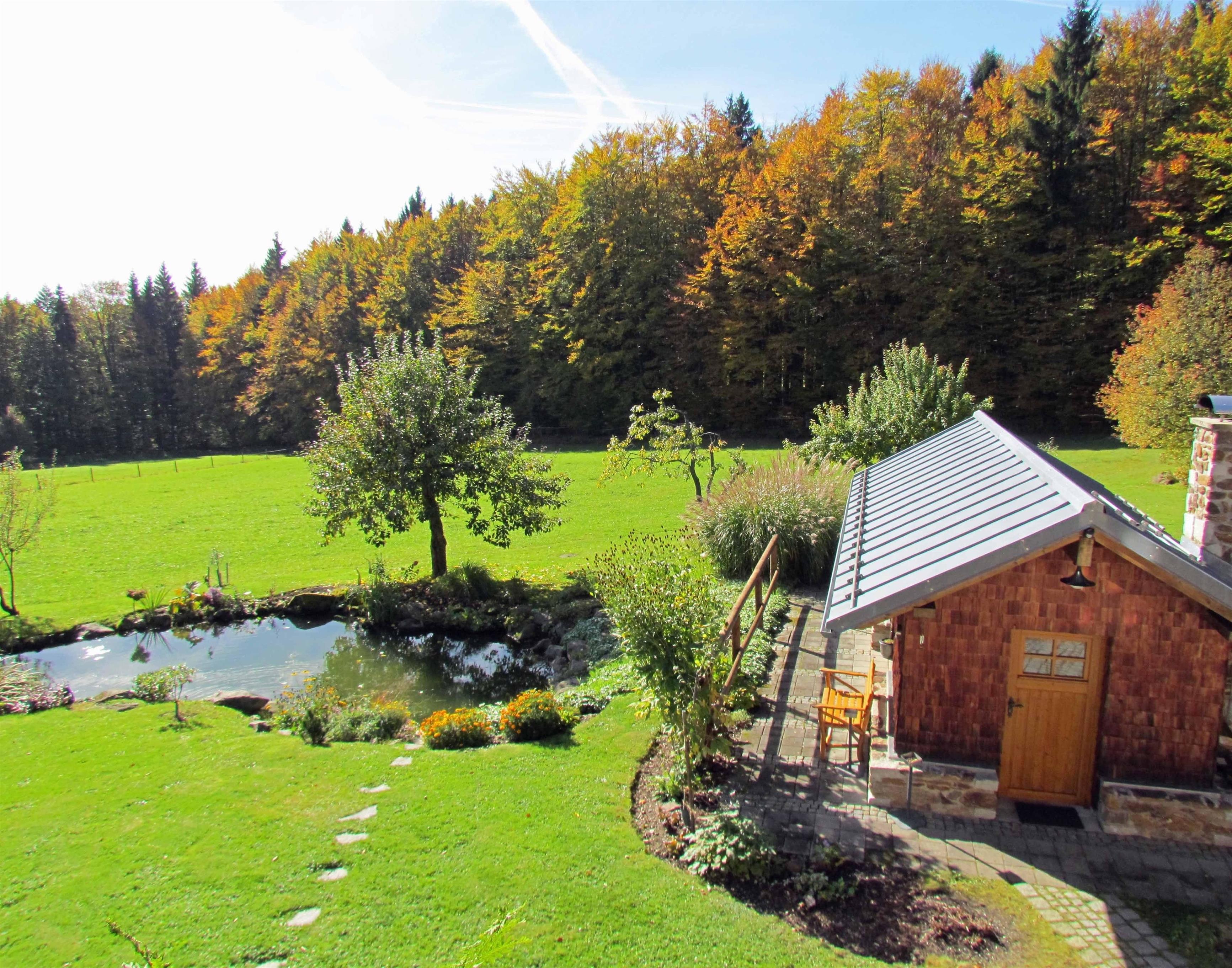 Beheizbare Grillhütte für bis zu 15 Personen. Eigener Weiher. und Trinkwasserversorgung mit einwandfreiem Bergwasser.