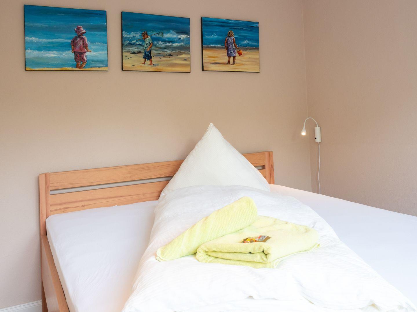 Die gut ausgestattete Wohnung bietet Platz für vier Personen (+ ein Kleinkind). Hat zwei Schlafzimmer, Dusche/WC und Wohn-/Esszimmer und eine separate Küchenzeile. Die Wohnung liegt im Obergeschoss mit eigenem Eingang und verfügt über einen herrlichen Südwest-Balkon ?. 56 m² für einen unbeschwerten Urlaub ?