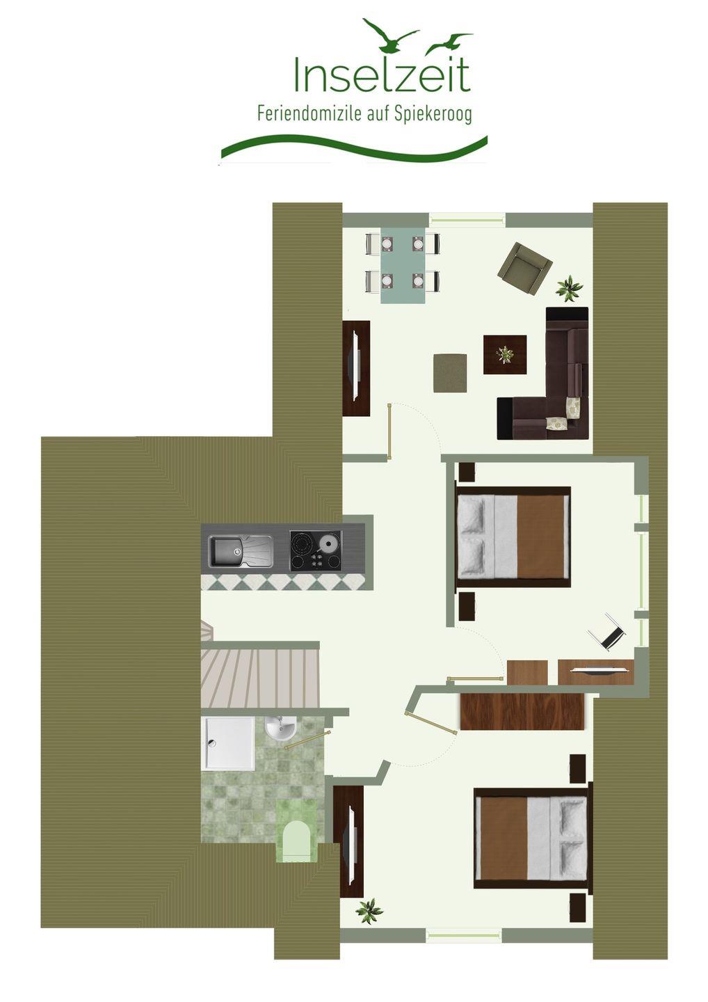 Tauchen Sie ein in den Charme unserer Ferienwohnung im Obergeschoss, die Platz für bis zu vier Personen und ein Kleinkind bietet. Mit zwei gemütlichen Schlafzimmern, einem modernen Duschbad und einem einladenden Wohn- und Essbereich bietet unser Zuhause alles, was Sie für einen erholsamen Nordseeurlaub auf Spiekeroog benötigen.
