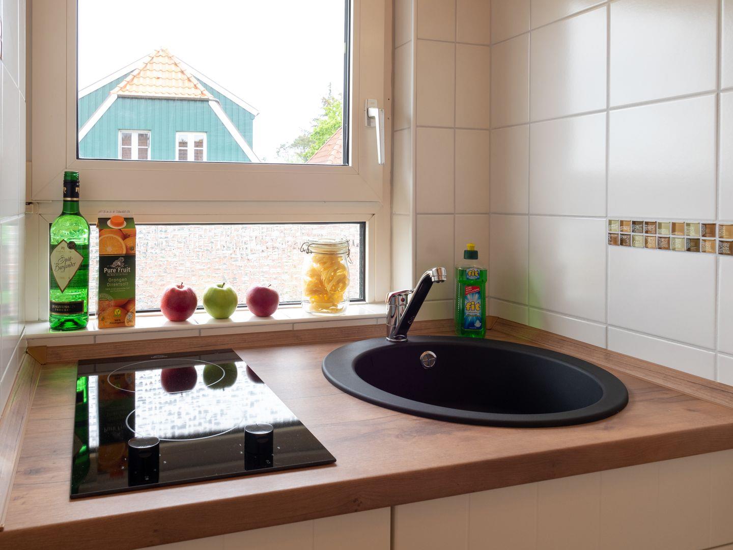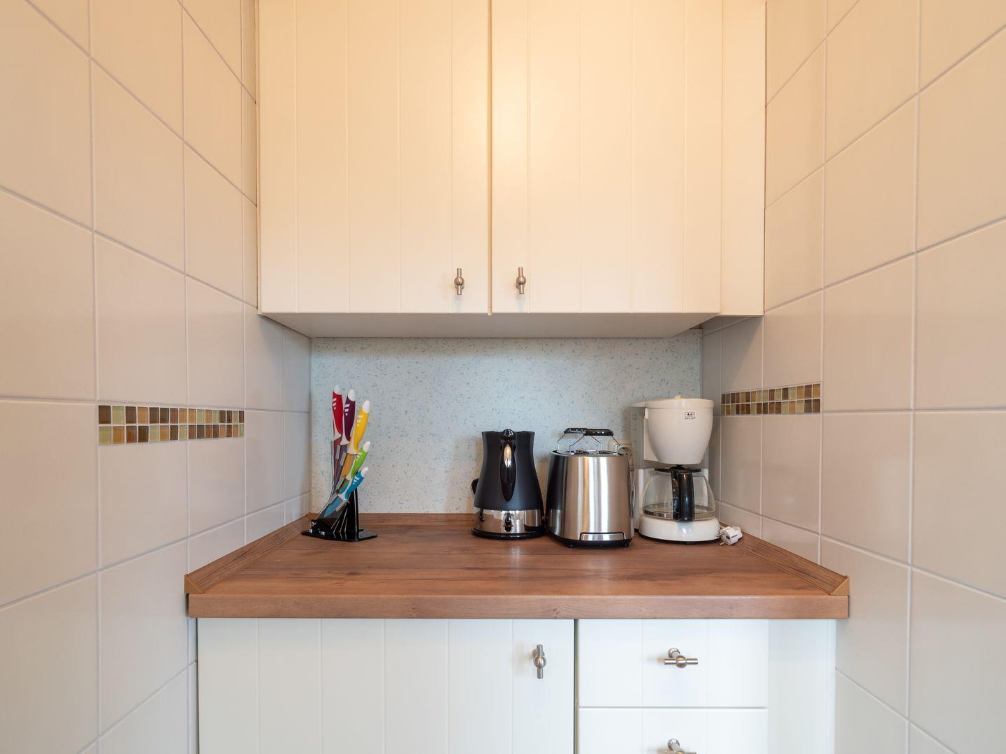 Die kleine Miniküche ist voll ausgestattet und bietet alles, was Sie benötigen. Ein kleiner Esstisch bietet Platz für gemeinsame Mahlzeiten und gesellige Abende.