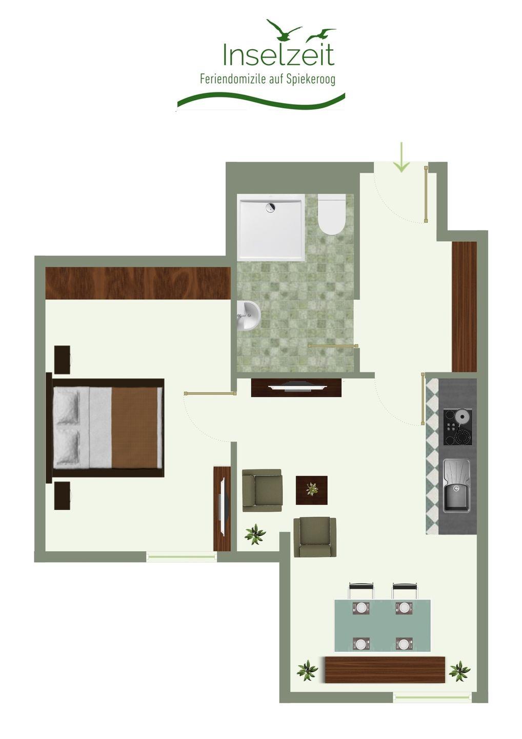 Die schöne Wohnung bietet Platz für zwei Personen. Schlafzimmer, Dusche/WC und Wohn-/Esszimmer mit Küchenzeile. Kurze Wege zum Supermarkt, Spielplatz und ins Inseldorf. Der Garten kann zum ? und Entspannen mitbenutzt werden ?. Einfach zum Urlaub genießen ?