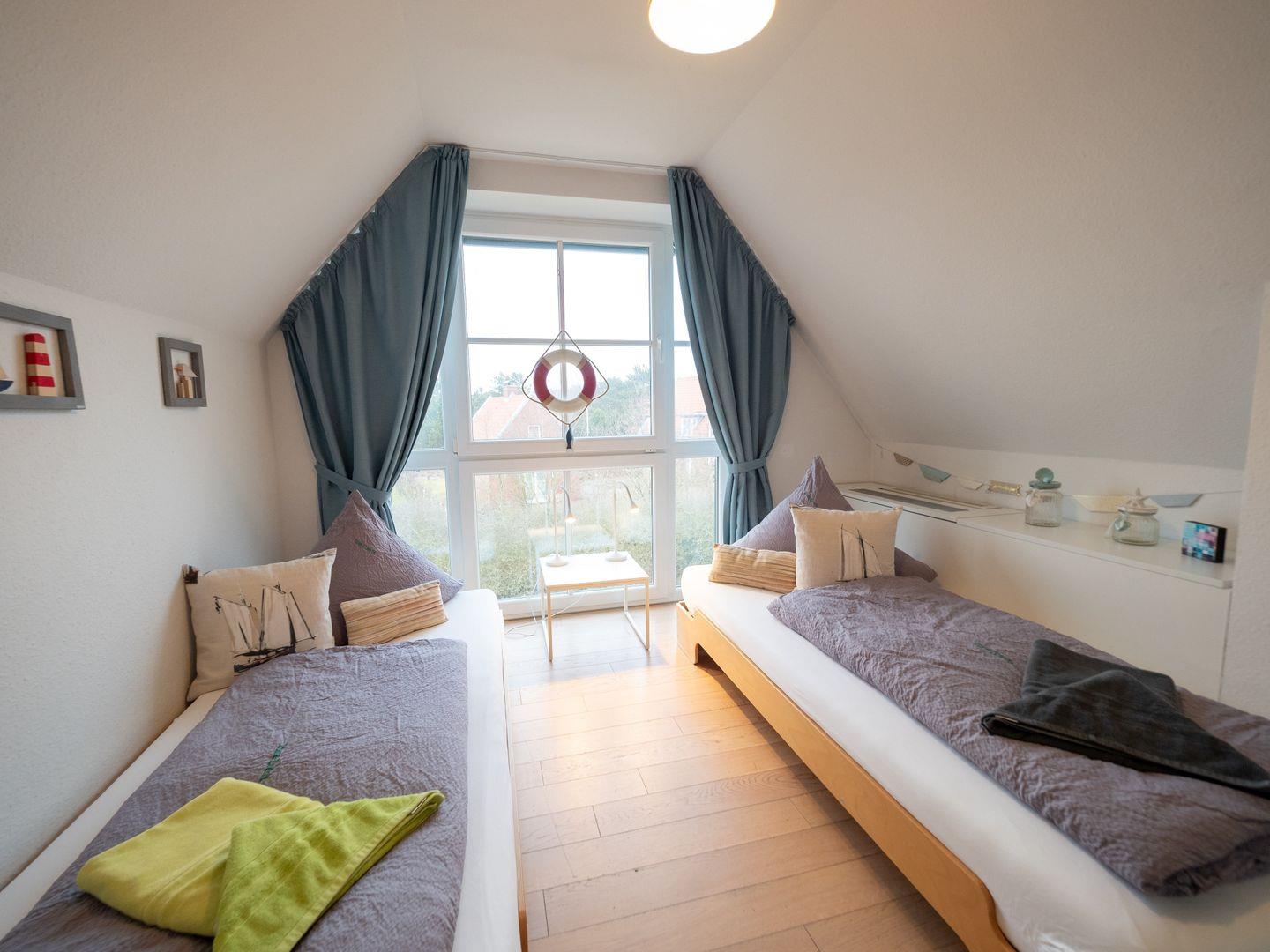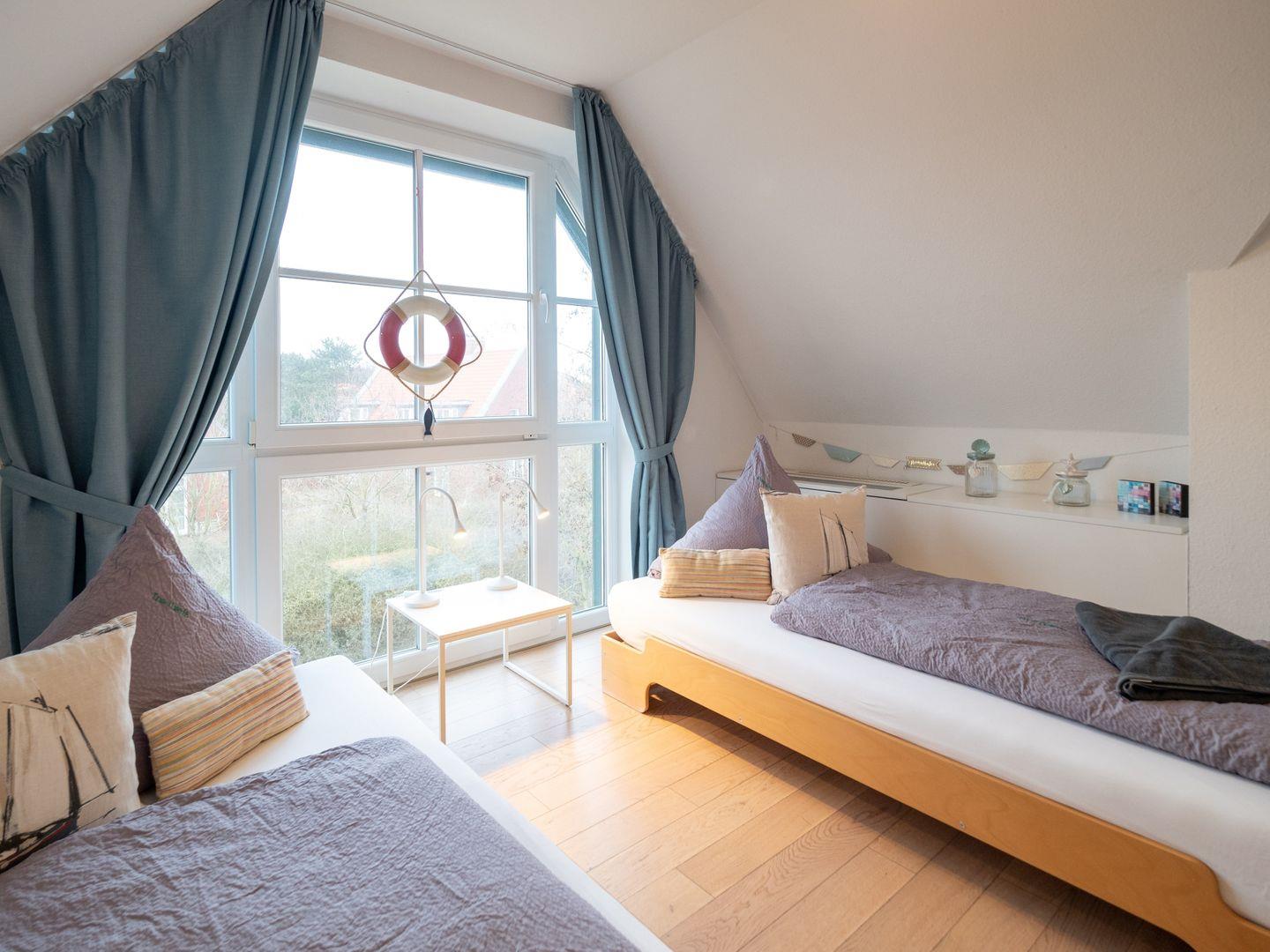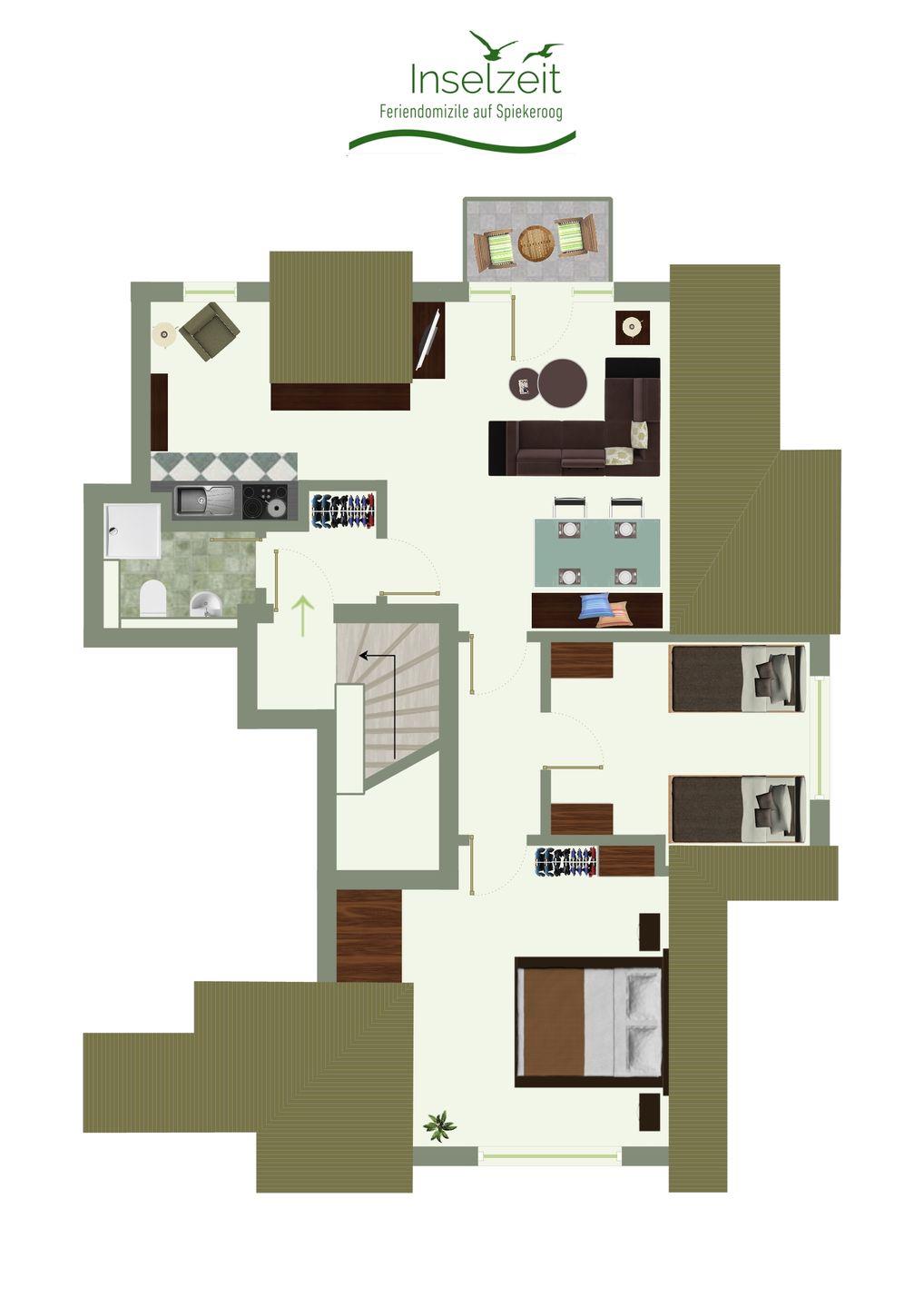 Die Ferienwohnung im Appartementhaus Süderloog liegt im Osten der Insel und ist eine großräumige 3-Zimmer-Wohnung für bis zu 4 Personen. Die Wohnung liegt im Dachgeschoss. Die gut ausgestattete Wohnung bietet Platz für vier Personen. Zwei Schlafzimmer, Dusche/WC und Wohn-/Esszimmer mit offener Küchenzeile. Mit Liebe zum Detail eingerichtet.