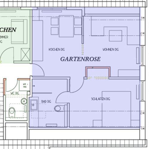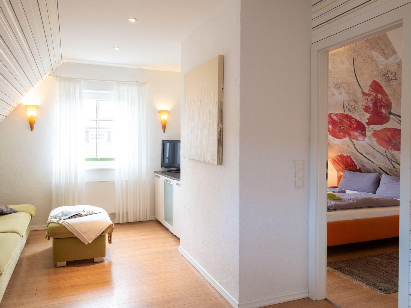 Für noch mehr Platz und Komfort kann das Gästezimmer Röschen im Obergeschoss für 1-2 Personen hinzugebucht werden.