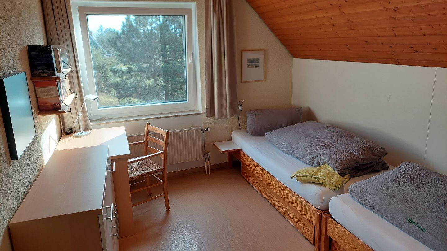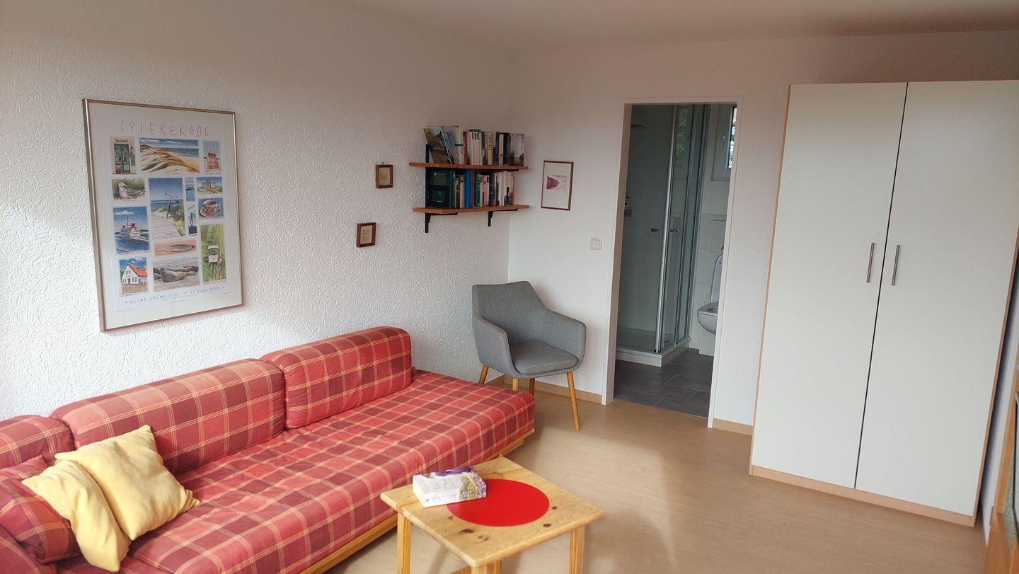 Unser Ferienhaus "Hannes Huus" liegt unterhalb der katholischen Kirche am Westrand des Dorfes in sehr ruhiger Lage. Es bietet eine wunderschöne freie Sicht in die nahe Dünenlandschaft, die Sie auf der großen Südterrasse oder dem -balkon unseres Hauses genießen können. Unsere gemütliche Sitzecke im Wohnzimmer lädt zum Verweilen ein, Ferienliteratur gibt es ebenfalls: Ruhe, Erholung und Entspannung pur.