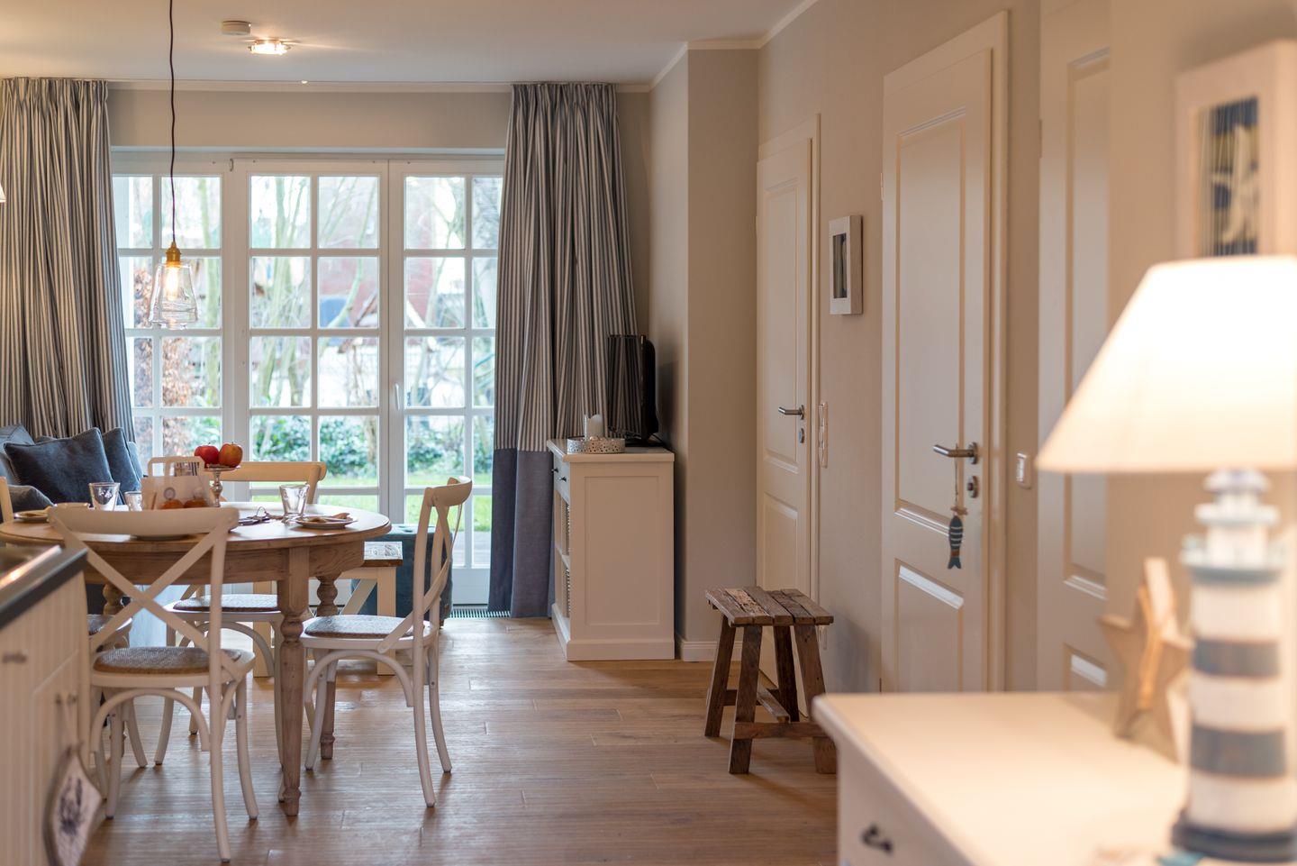 Die Wohnung hat eine Größe von 48 qm und eine Terrasse in Richtung Süden. Die Wohnung verfügt über eine moderne und gut ausgestattete Einbauküche, einen Fernseher, Fön, Staubsauger und WLAN. Eine Waschmaschine und einen Trockner finden Sie im Keller des Hauses. Unser STRANDHAUS eignet sich herrlich für den Urlaub mit der Großfamilie. Eltern und Kinder wohnen Tür an Tür mit Tante, Onkel, Cousin, Cousine oder den Großeltern, spielen gemeinsam im Garten oder am Strand.