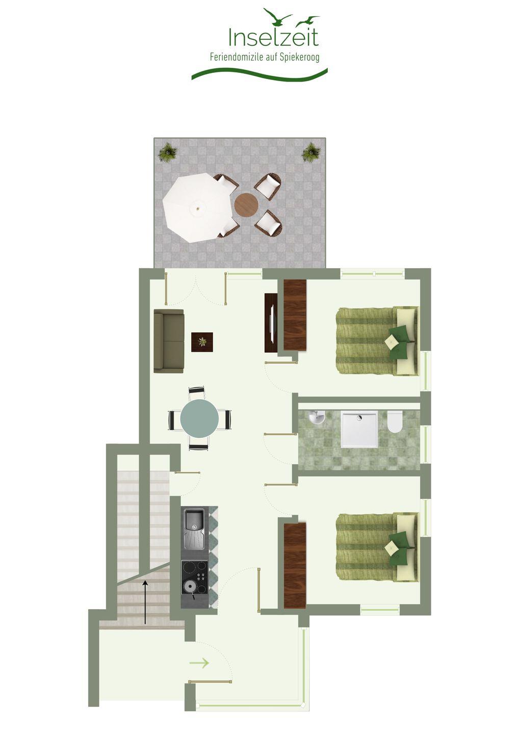 Die Wohnung hat eine Größe von 48 qm und eine Terrasse in Richtung Süden. Die Wohnung verfügt über eine moderne und gut ausgestattete Einbauküche, einen Fernseher, Fön, Staubsauger und WLAN. Eine Waschmaschine und einen Trockner finden Sie im Keller des Hauses. Unser STRANDHAUS eignet sich herrlich für den Urlaub mit der Großfamilie. Eltern und Kinder wohnen Tür an Tür mit Tante, Onkel, Cousin, Cousine oder den Großeltern, spielen gemeinsam im Garten oder am Strand.
