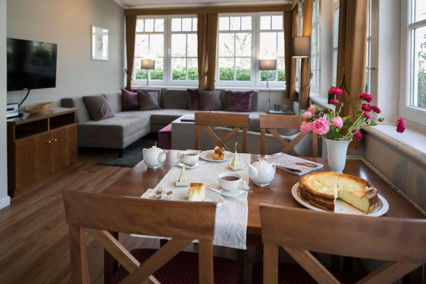 Diese 50 m² große Ferienwohnung wurde umfassend renoviert und kürzlich mit frischen Farben, neuer Küche und Möbeln aufgefrischt. Sie bietet einen separaten Schlafraum und einen Wohn- und Essbereich mit hochwertiger Sofaliege für komfortables, getrenntes Schlafen. Das Badezimmer ist mit einer Dusche mit flachem Einstieg ausgestattet. Eine Terrasse mit eigenem Strandkorb und Gartenblick ergänzt die Wohnung. Die elegante Einrichtung schafft eine angenehme Urlaubsatmosphäre.
