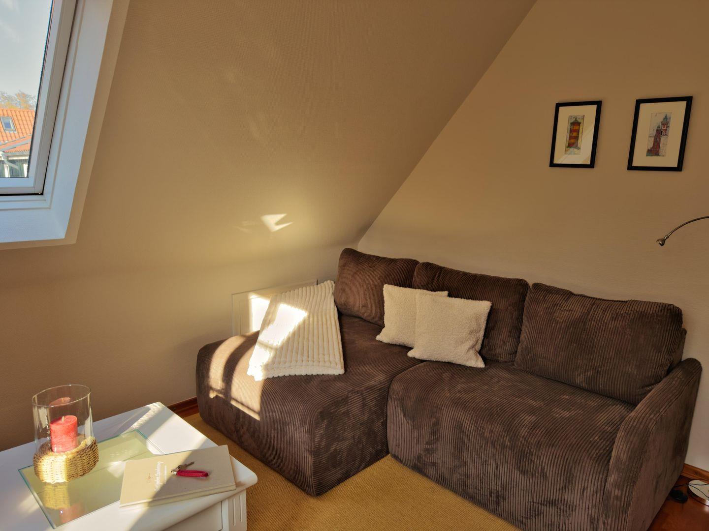 Die Wohnung im Dachgeschoss des historischen Hauses wurde Winter 2025 renoviert. Auf 35 m² finden Sie ein gemütliches Schlafzimmer mit Doppelbett, ein Wohn- und Esszimmer mit neuer Küchenzeile, hellen Essbereich und komfortabler Sitzecke. Das Badezimmer ist mit einer Dusche ausgestattet. Die Wohnung wurde 2025 im ostfriesischen Stil neu eingerichtet und passt harmonisch zur historischen Atmosphäre des Hauses.