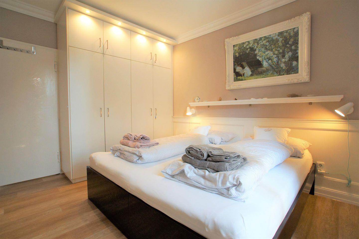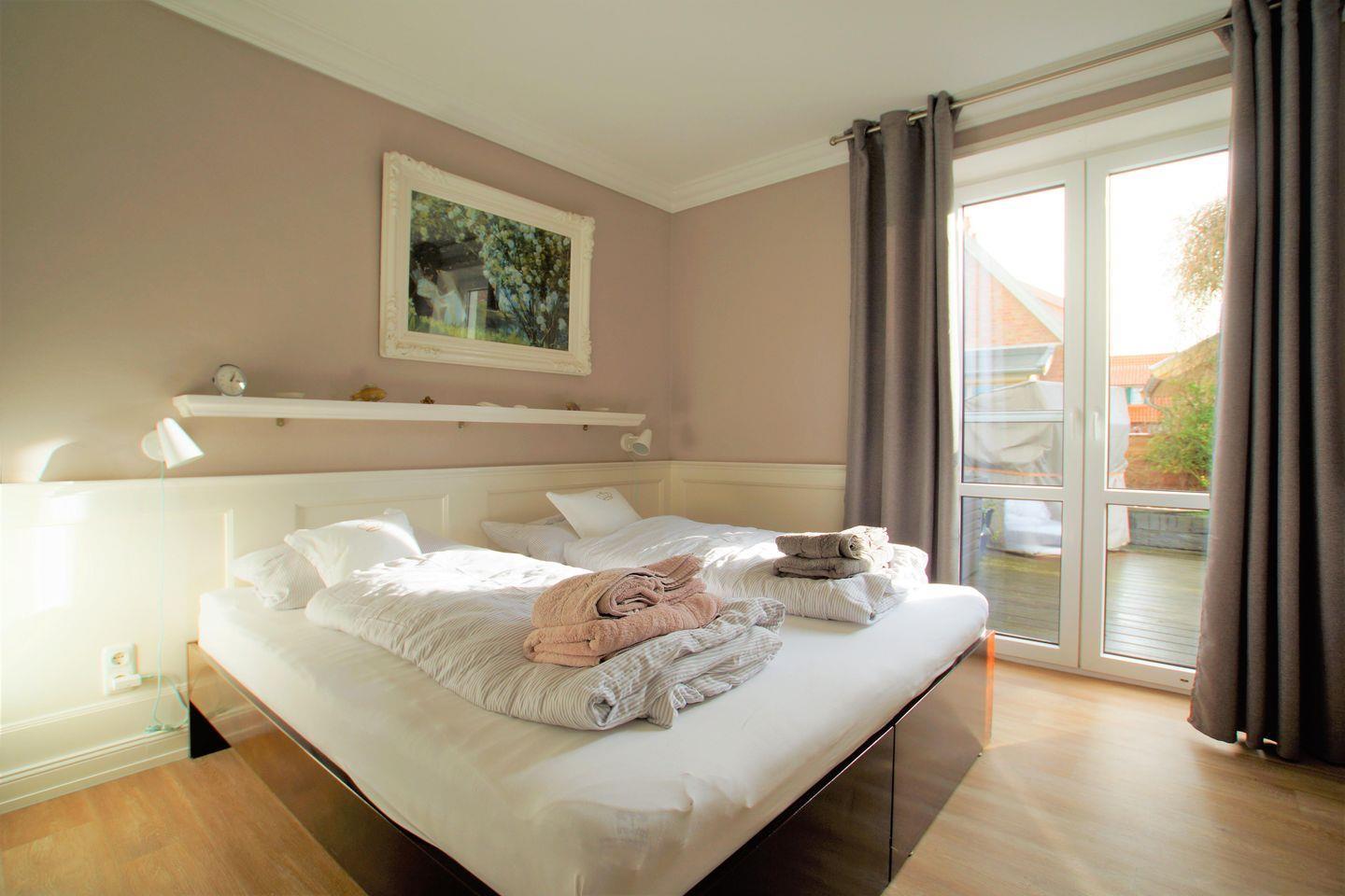 Schöne, lichtdurchflutete Ferienwohnung (50 m², Souterrain) für bis zu 3 Personen mit traumhafter, ruhiger und windgeschützter Südterrasse und Gartenanteil in Dünennähe, ca. 300 m zum Strand, nur wenige Gehminuten zum Kurzentrum mit Schwimmbad, Dünen-SPA, Tennisplätzen, Inselkino und Bäckerei mit Café.
