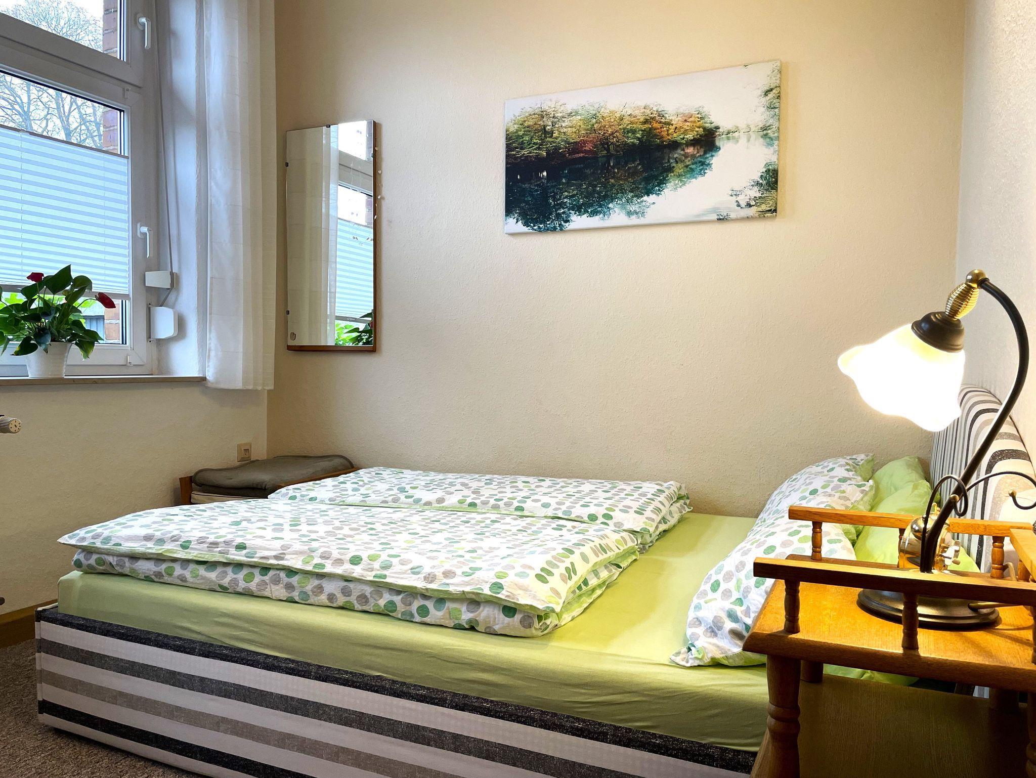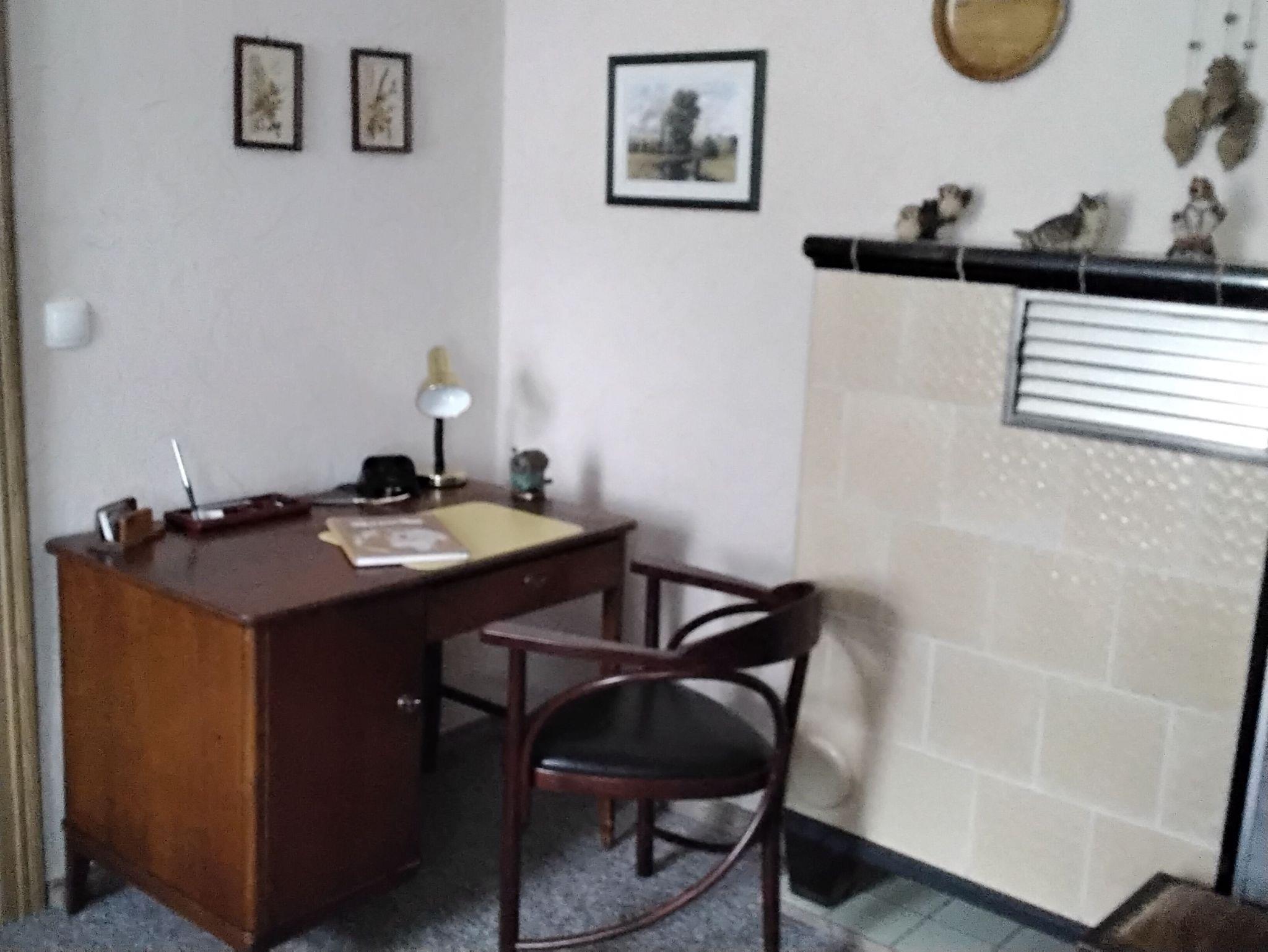 Die 90 m² große Nichtraucher-Ferienwohnung verfügt über ein großes Wohnzimmer. Hier können die Gäste gemütlich beisammen sitzen oder entspannt ihre Lieblingssendungen auf dem großen Flachbildfernseher anschauen. In diesem Raum befindet sich auch ein Schreibtisch, der an vergangene Zeiten des Hauses erinnert.