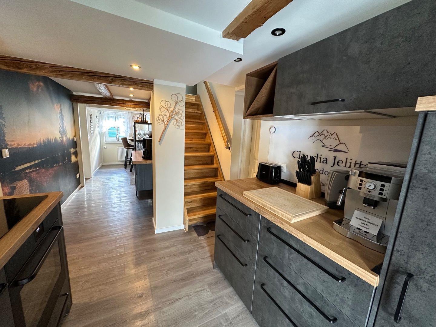 Die voll ausgestattete Küche lässt keine Wünsche offen. Sie erwartet alles, was Sie für die Zubereitung köstlicher Mahlzeiten benötigen, darunter ein Kühlschrank, ein Induktionsherd, eine Spülmaschine und sogar ein Kaffee-Vollautomaten für den perfekten Kaffeegenuss am Morgen. Beginnen Sie jeden Tag mit einem gemütlichen Frühstück am Esstisch und genießen Sie den Blick auf die beeindruckende Berglandschaft.