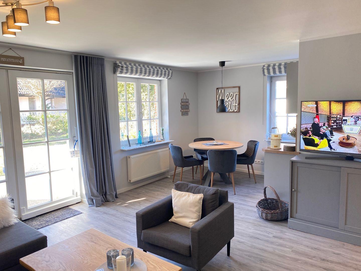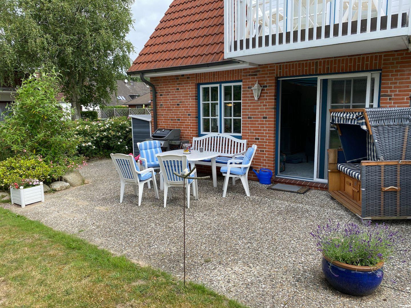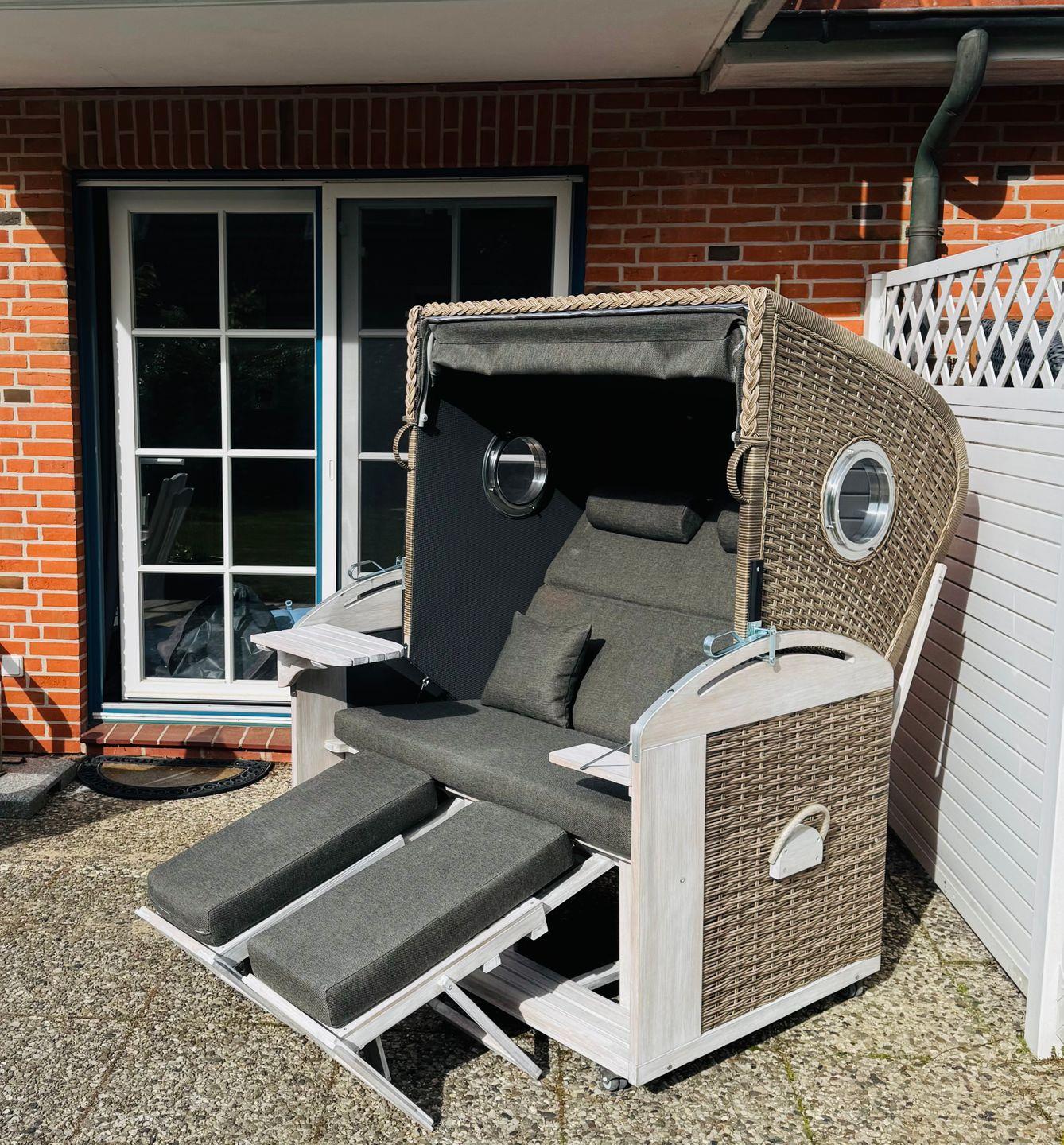 Die vom Wohnzimmer begehbare Terrasse mit Bestuhlung, Strandkorb und Sitzbank kann nicht besser sein. Ein Weber-Gasgrill steht zur Verfügung. Sonnenhungrige kommen voll auf Ihre Kosten!
