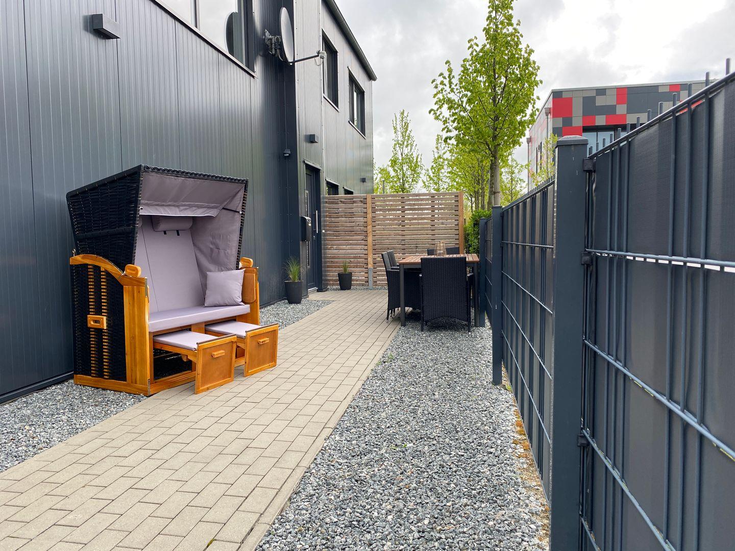 Unten vor der Wohnung befindet sich der für Sie hergerichtete Terrassenbereich.