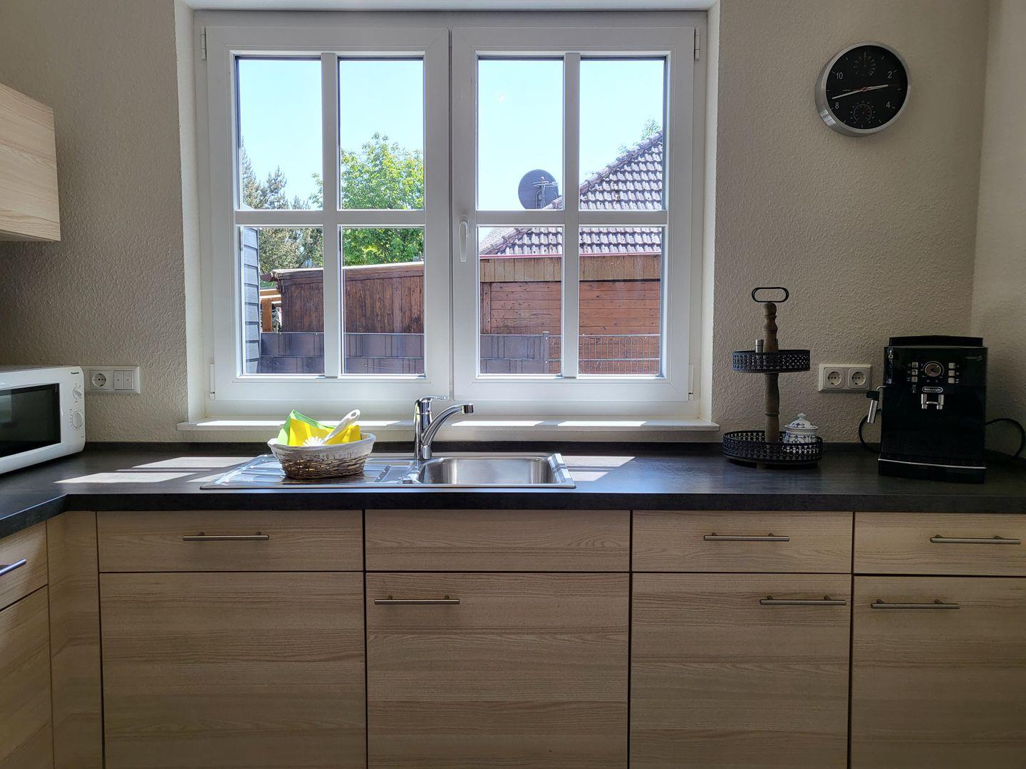 Das Küchenfenster und die Terrassentür sind mit Insektenschutzgittern versehen.