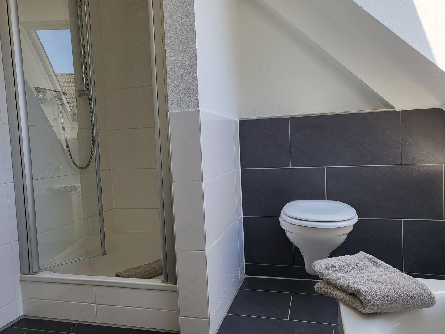 Zur Etage gehört ein komfortables Wannenbad mit WC.