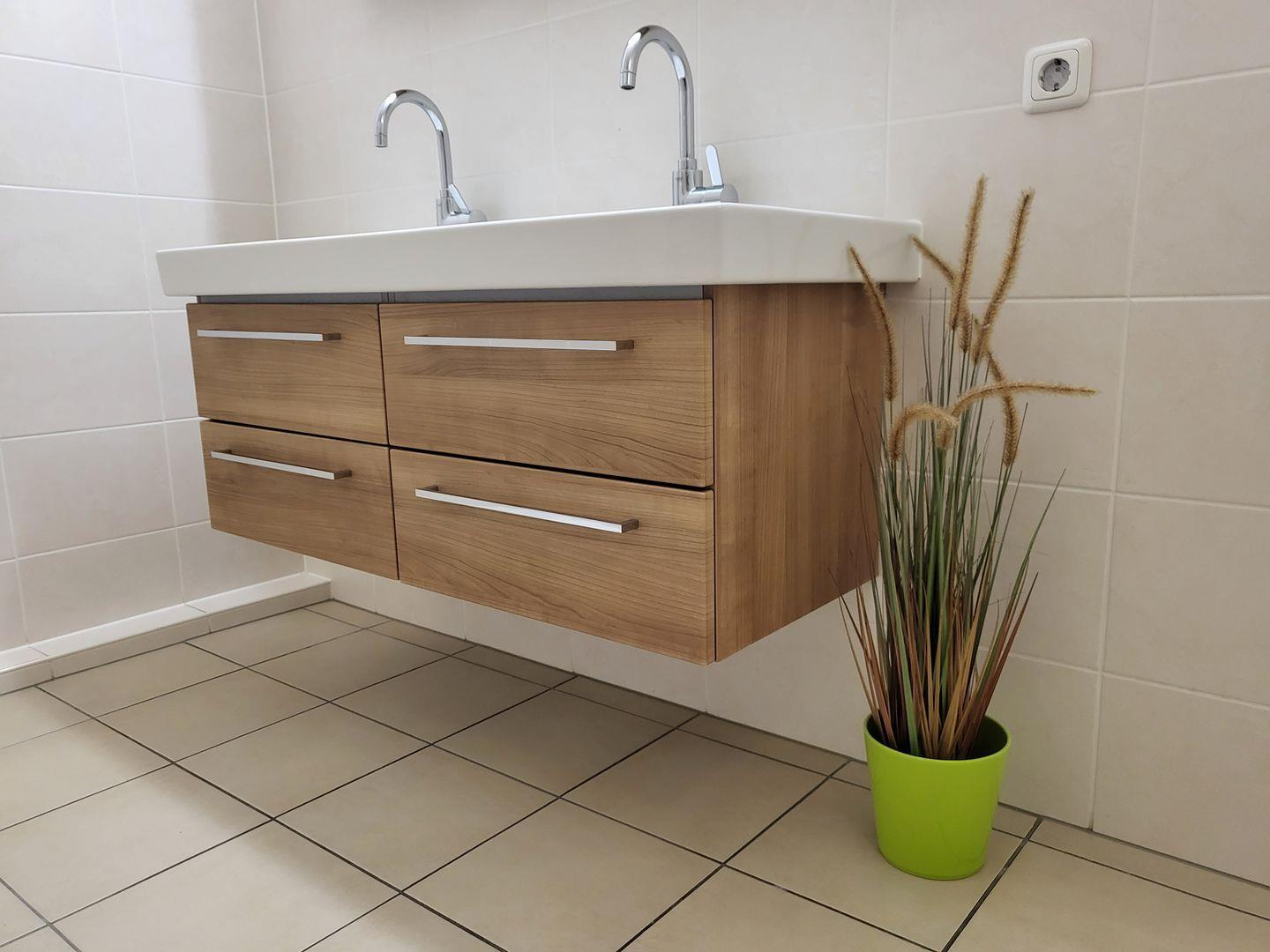 Die Wohnung hat ein Duschbad mit WC und Doppelwaschbecken. Die geräumige Dusche hat einen sehr niedrigen Einstieg und ist damit auch für mobilitätseingeschränkte Personen geeignet.