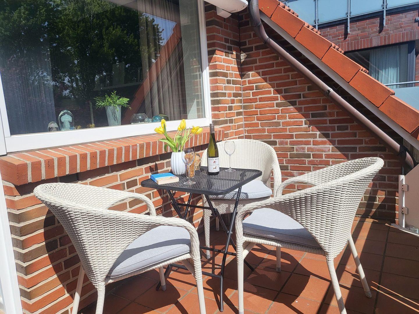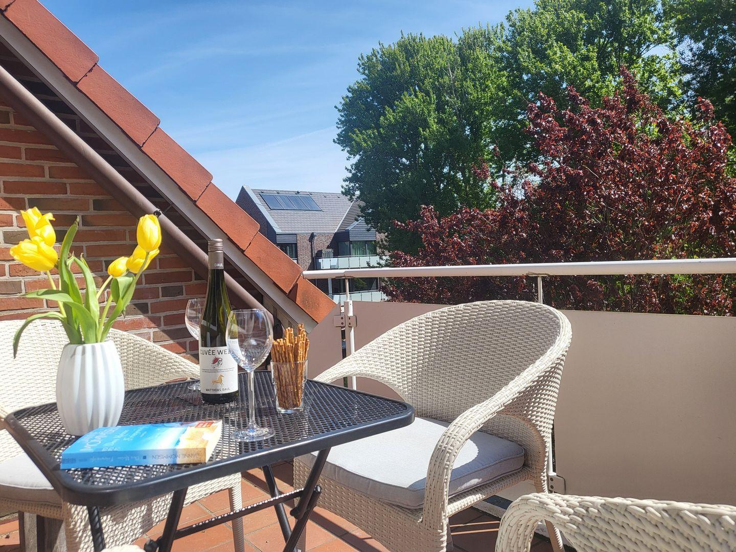 Zur Ferienwohnung gehören zwei möblierte Balkone, darunter ein südlich ausgerichteter Balkon mit ausfahrbarer Markise.
