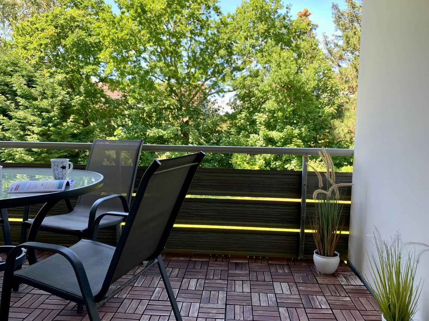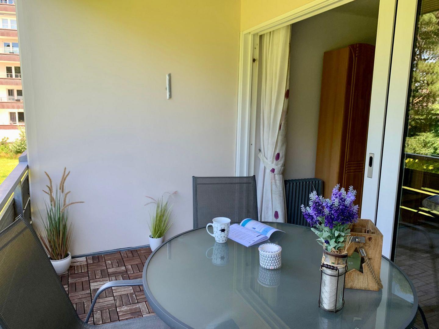 Durch den Übergang zum Balkon wirkt das modern und liebevoll eingerichtete Wohnzimmer wunderbar hell und einladend. Eine gemütliche Sitzgarnitur fügt sich nahtlose in den harmonischen Stil ein und lässt sich mit wenigen Handgriffen zur gemütlichen Schlafcouch umfunktionieren. Die gemütliche Essecke bietet Platz für die ganze Familie, für die multimediale Unterhaltung sorgen ein großer Smart-TV und kostenfreies W-LAN.