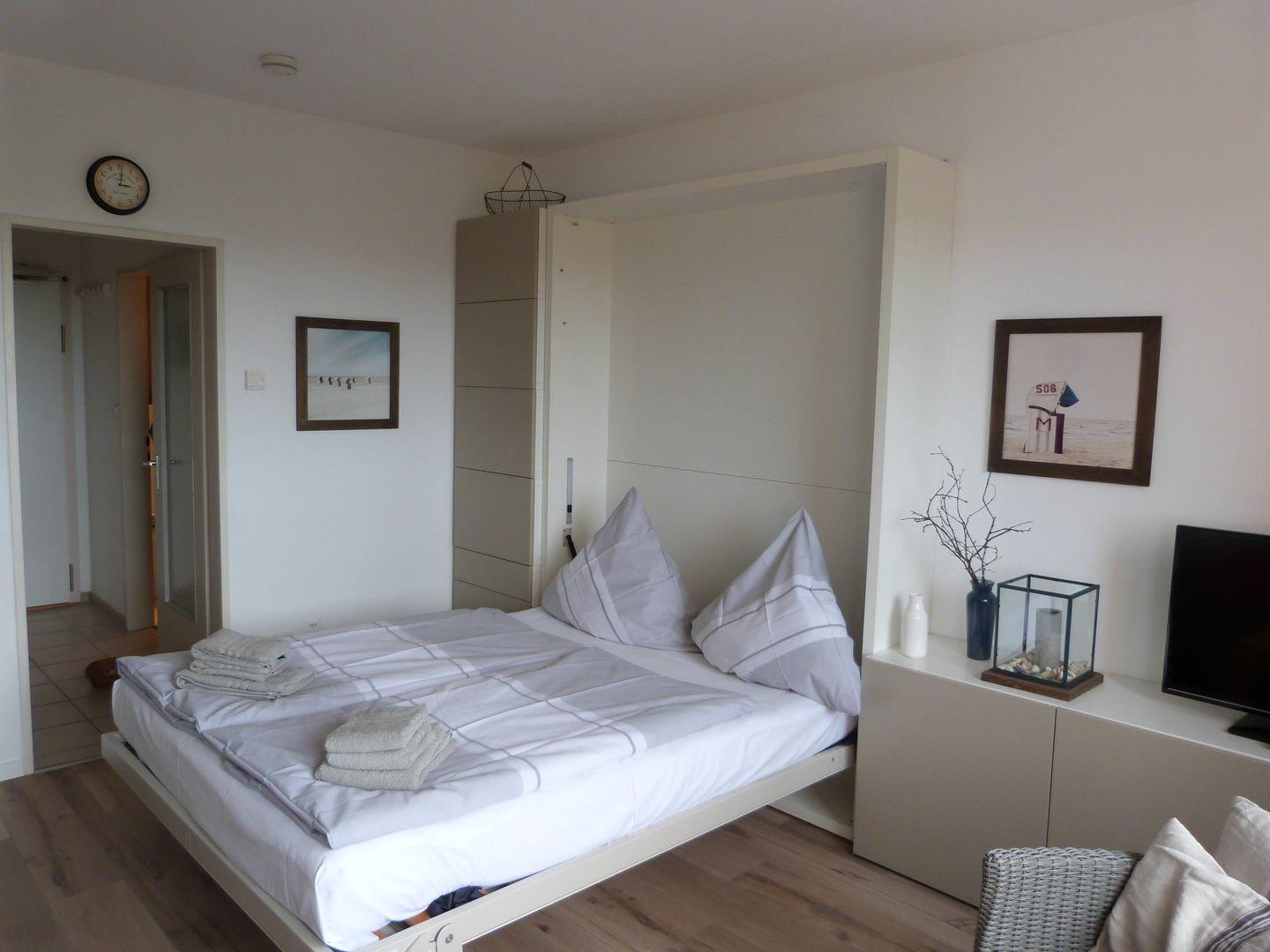 Das charmant und anspruchsvoll ausgestattete 1-Zimmer Appartement liegt in der 7. Etage des Hauses 9 und bietet 2 Personen Platz für einen unvergesslichen Urlaub in St. Peter Ording.