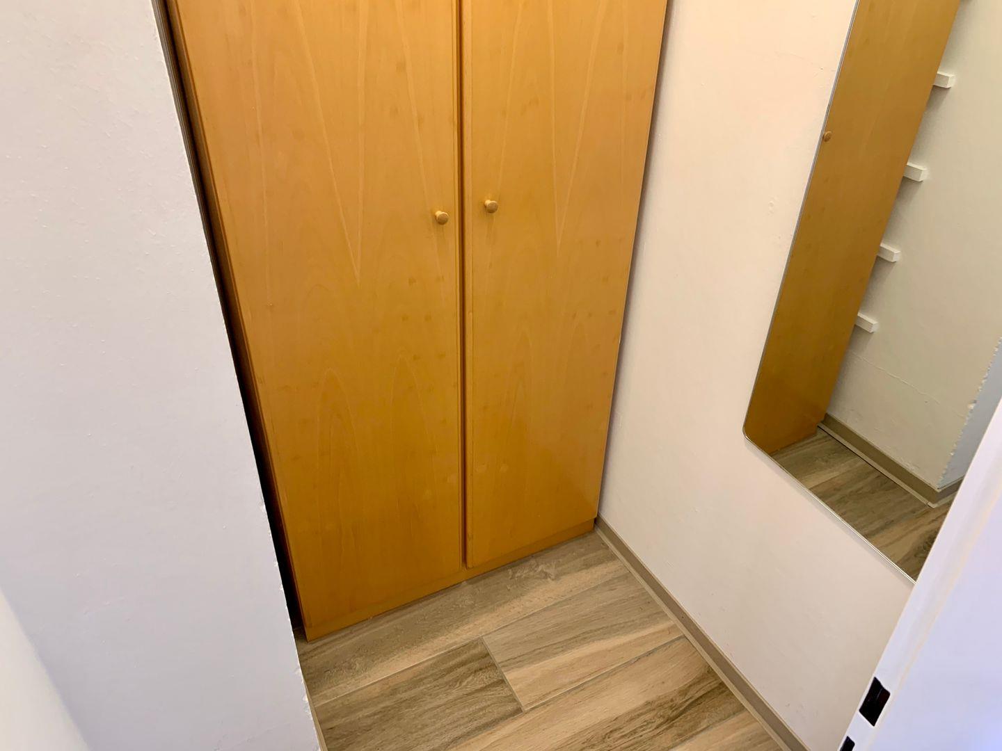 Küchenzeile mit Ceranfeld und Geschirrspüle. Duschbad mit WC sowie Flur mit Abstellraum vorhanden.