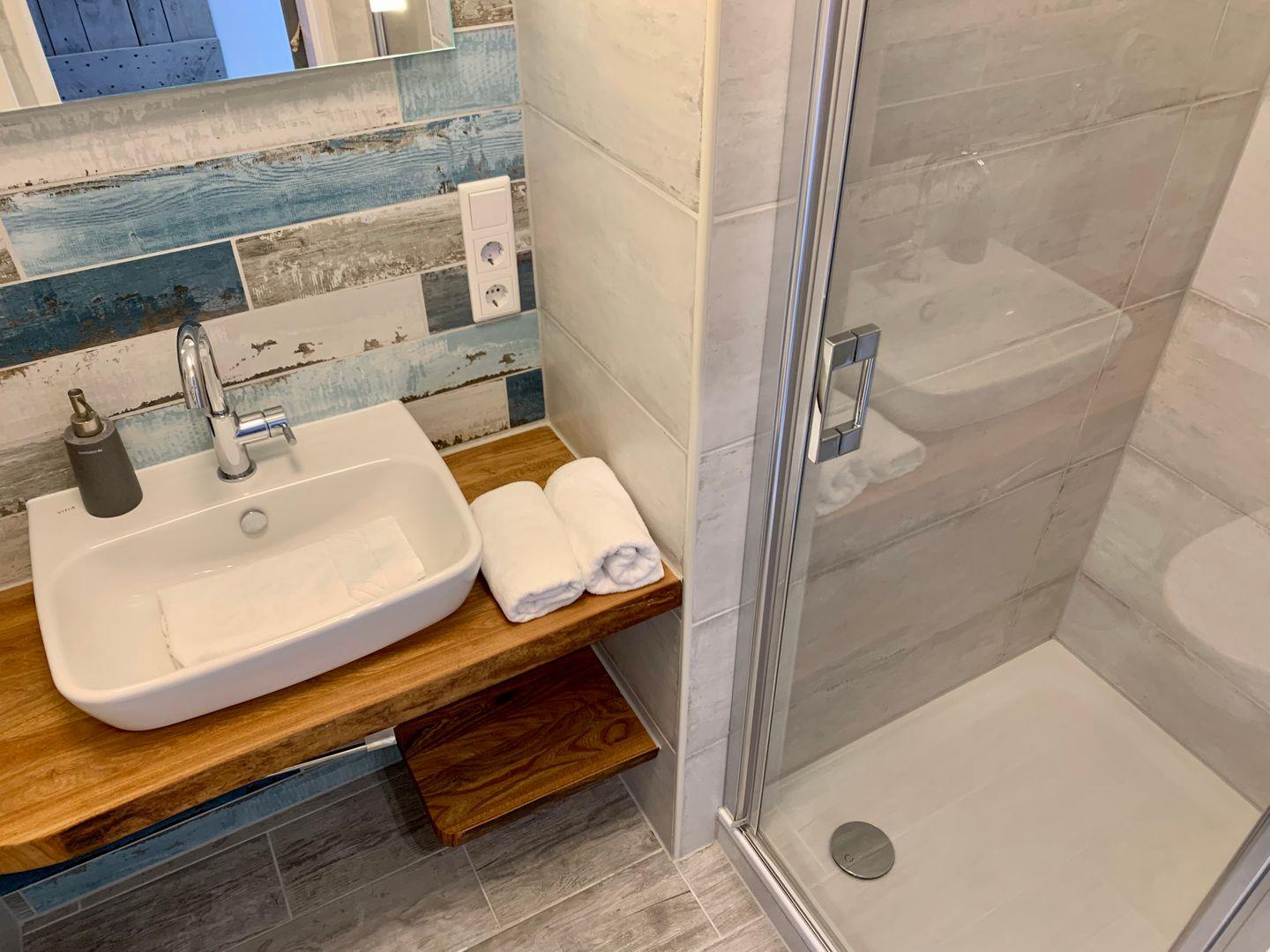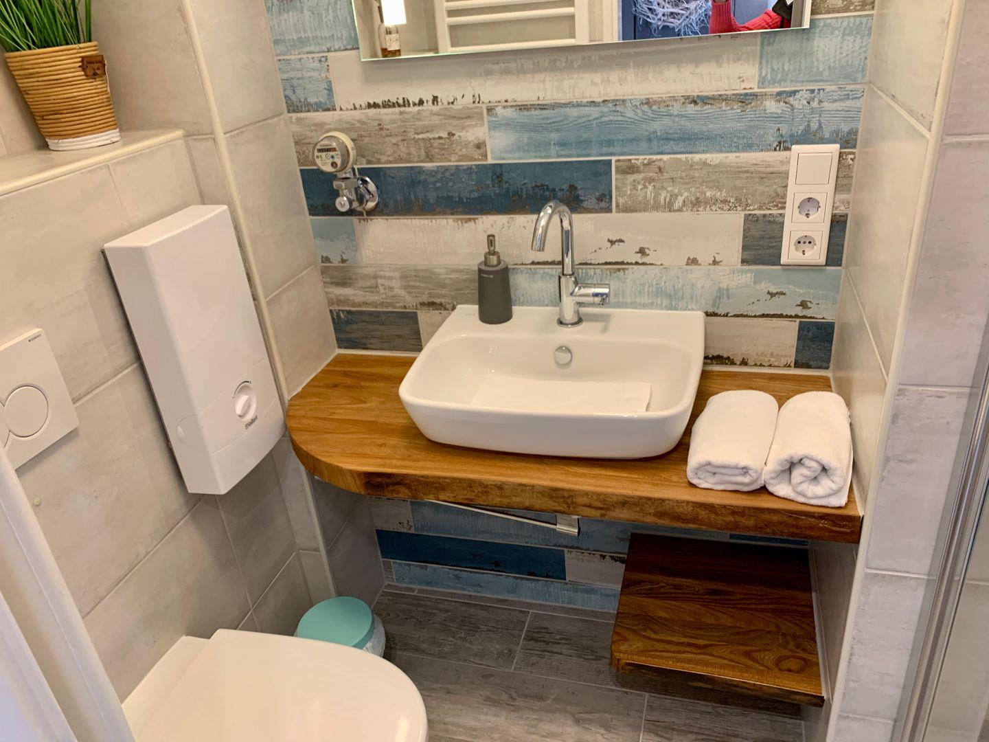 Zur Ferienwohnung gehört ein Duschbad mit WC.