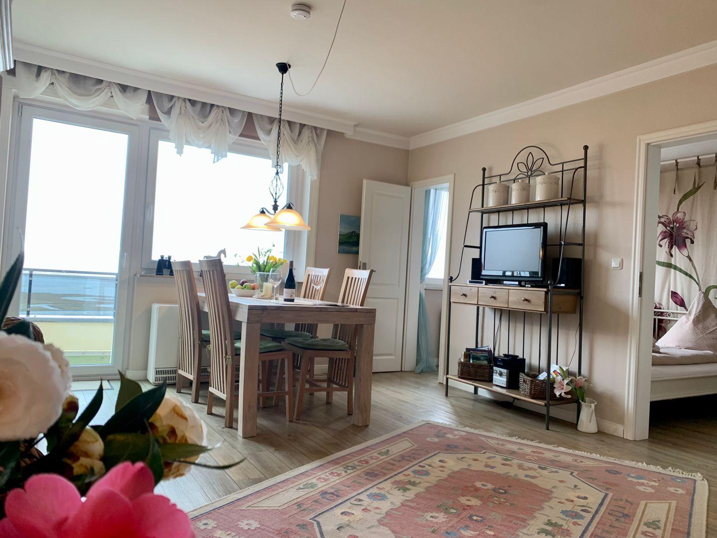 Für die multimediale Unterhaltung in der Ferienwohnung mit Meerblick sorgen Flachbild-TV und kostenfreies W-LAN.