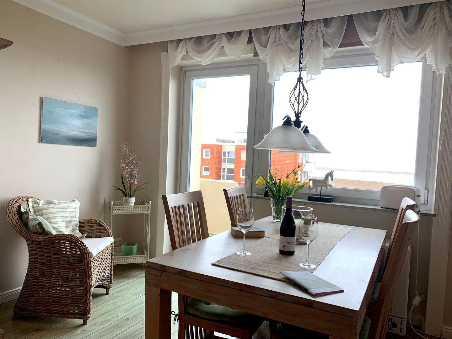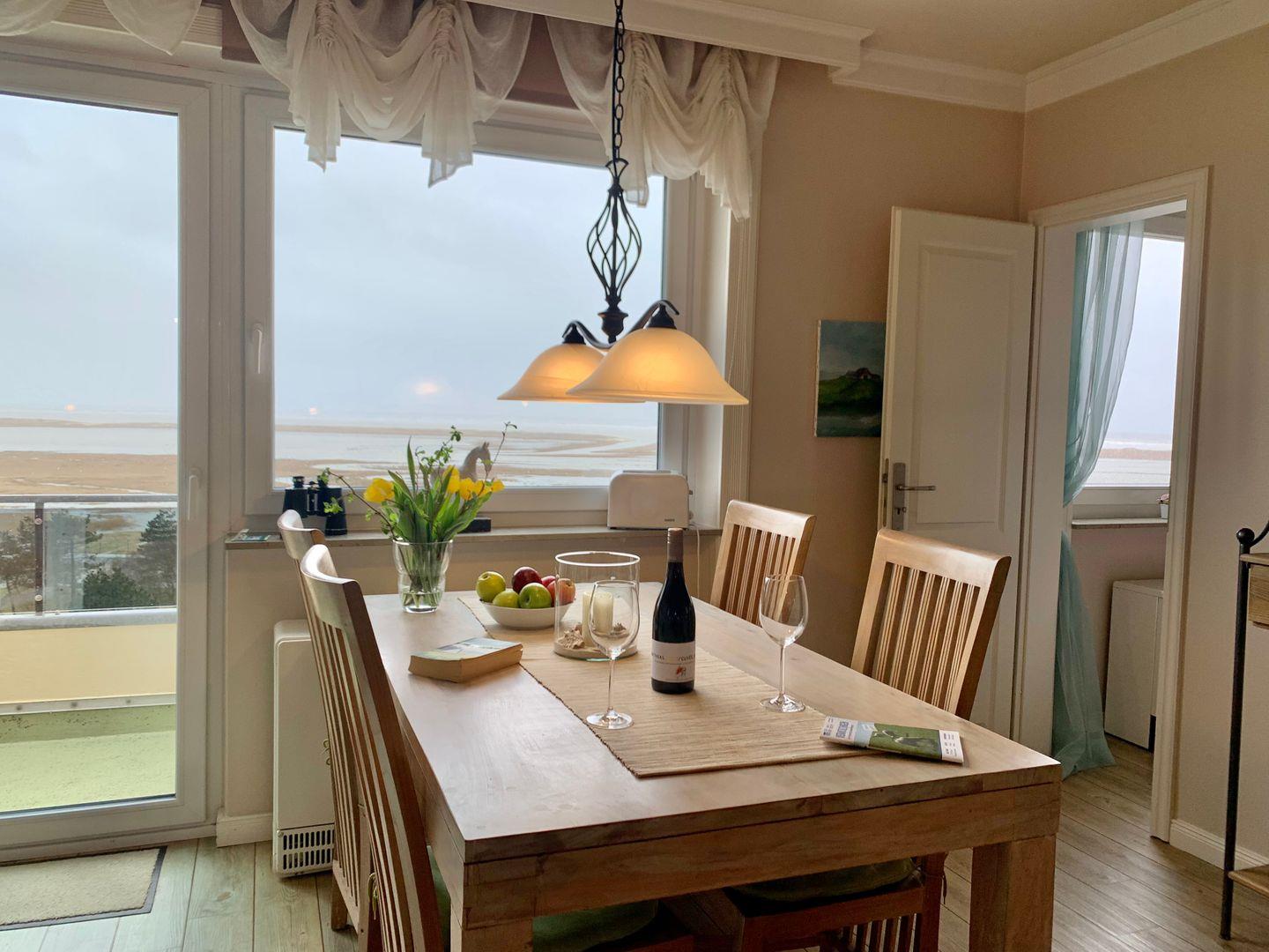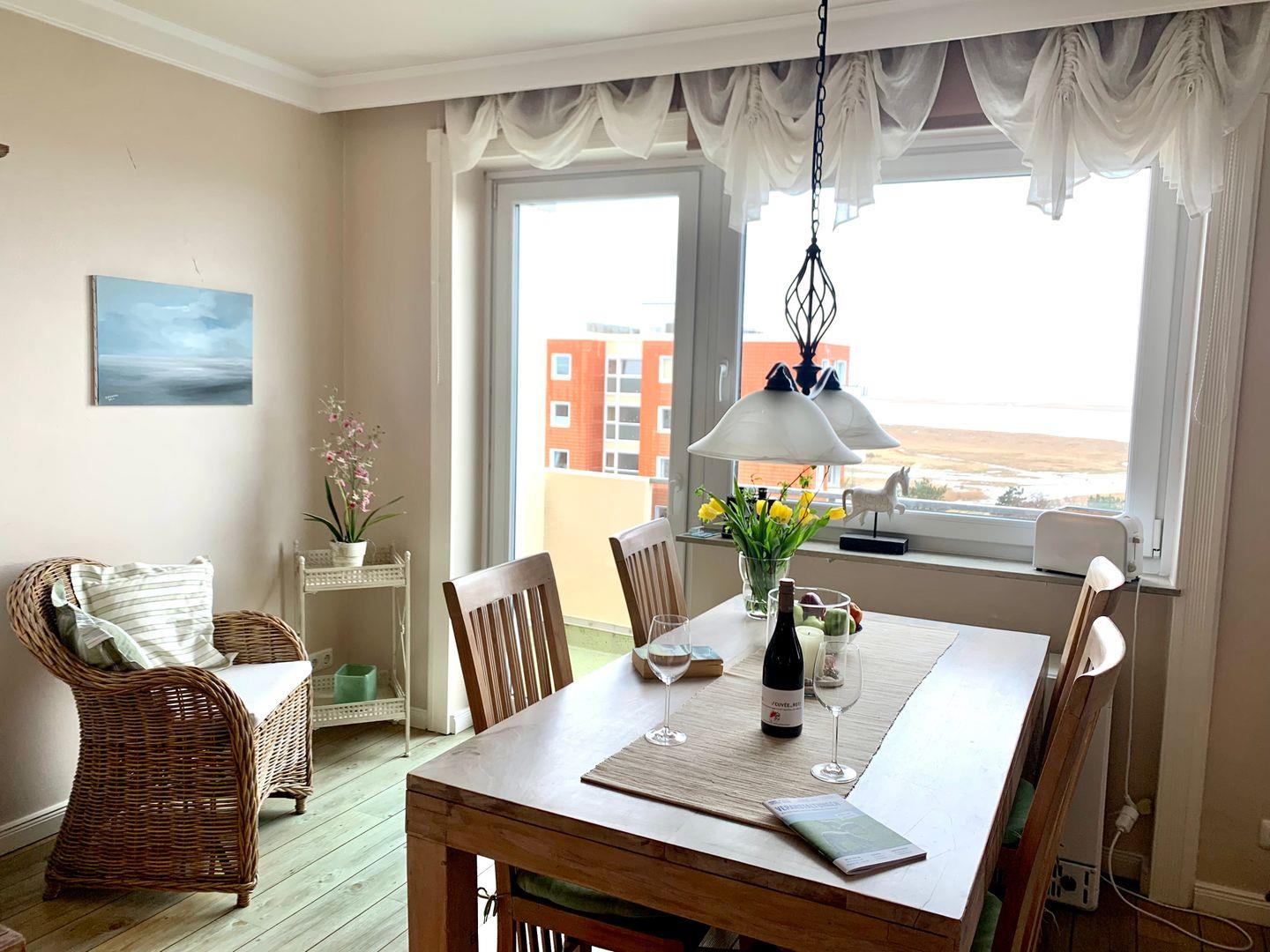 Am Esstisch nimmt die ganze Familie mit besten Blick Richtung Nordsee Platz. So schmeckt das Essen gleich noch besser.