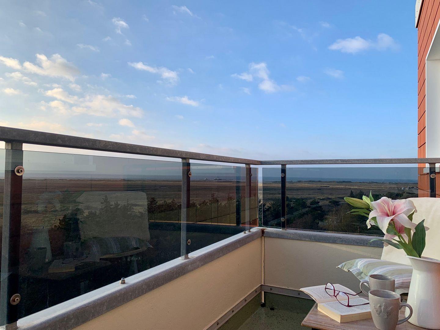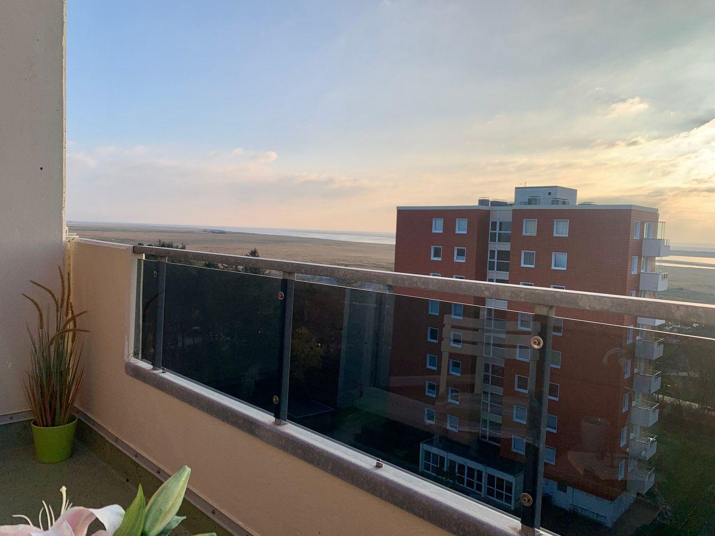 Der unvergleichliche Ausblick vom Balkon der 8. Etage vermittelt ein unbeschreibliches Freiheitsgefühl. Der Seeblick ist hier inklusive, bei guter Sicht reicht der Blick bis nach Büsum!