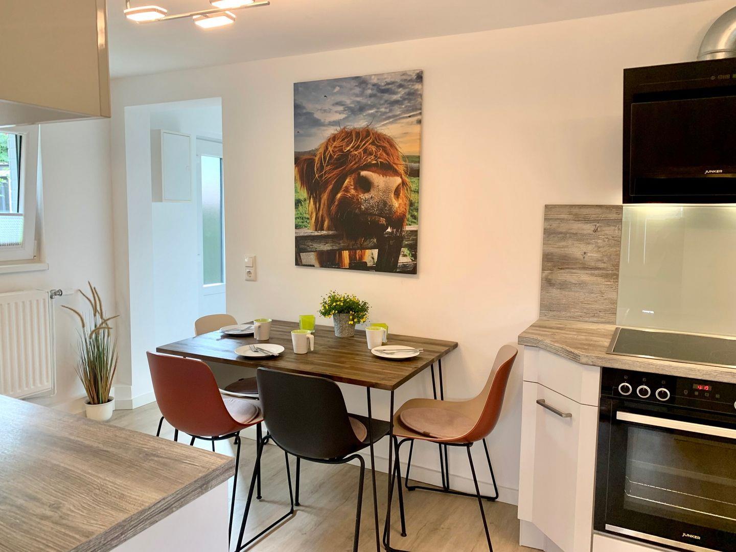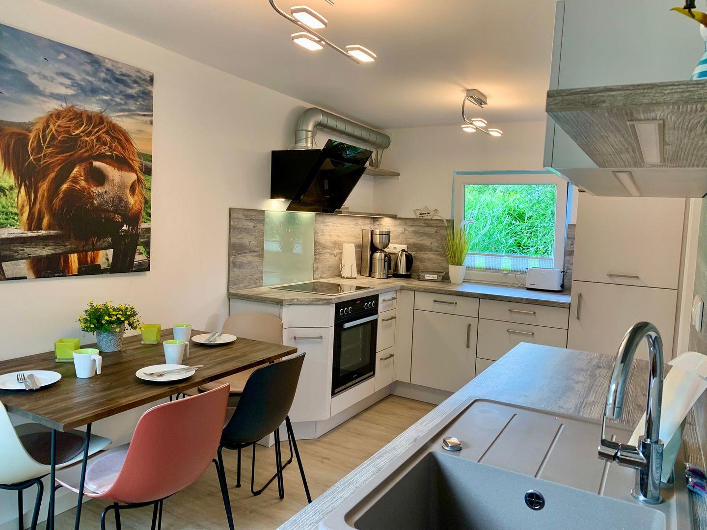 separate Küche mit Esstisch, Duschbad mit WC, WLAN, Nichtraucher, Hunde auf Anfrage willkommen und anmeldepflichtig.