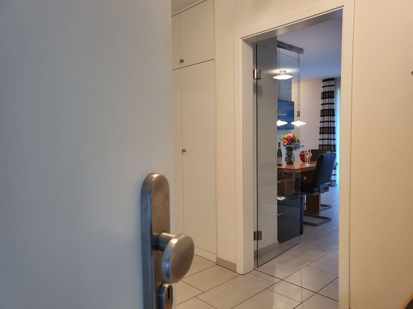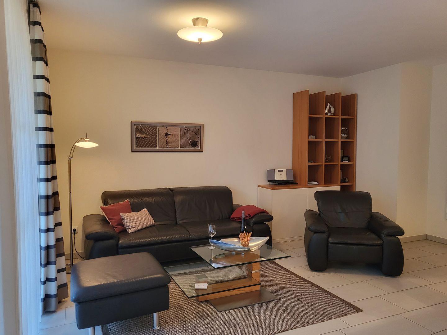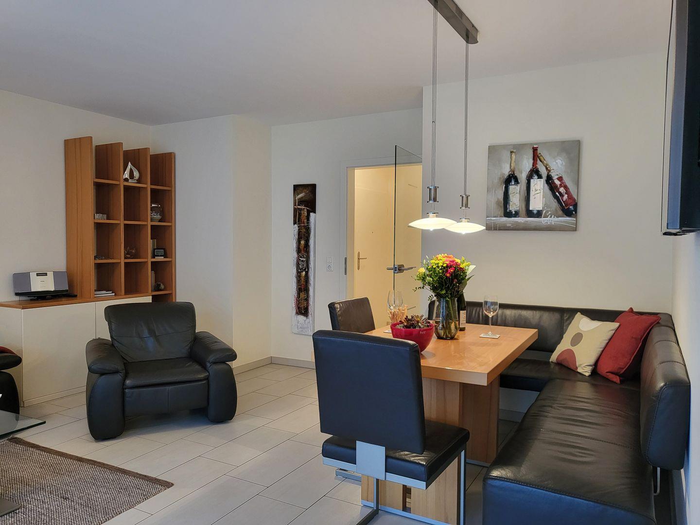 Helle 3- Zimmer Wohnung für bis zu 4 Personen im Erdgeschoss mit möblierter Terrasse.