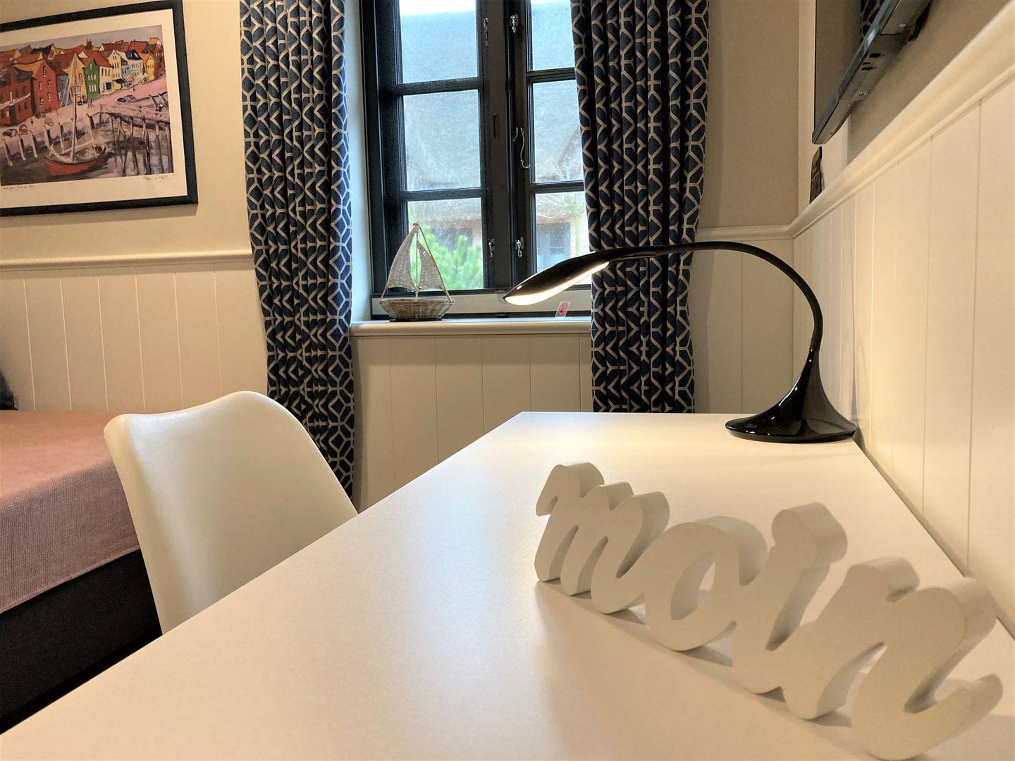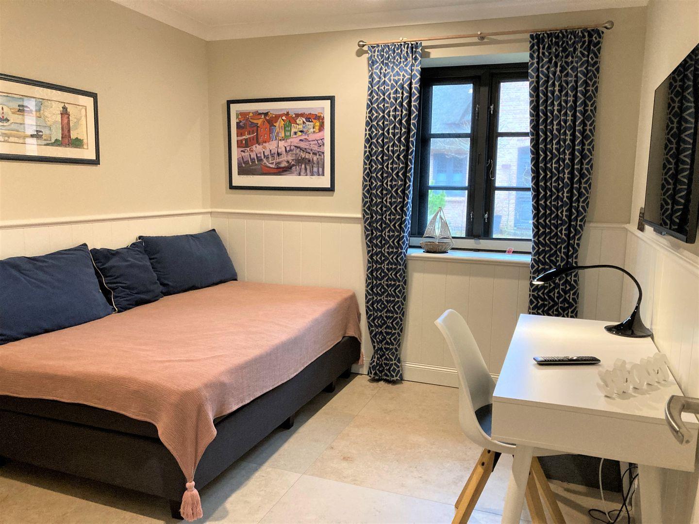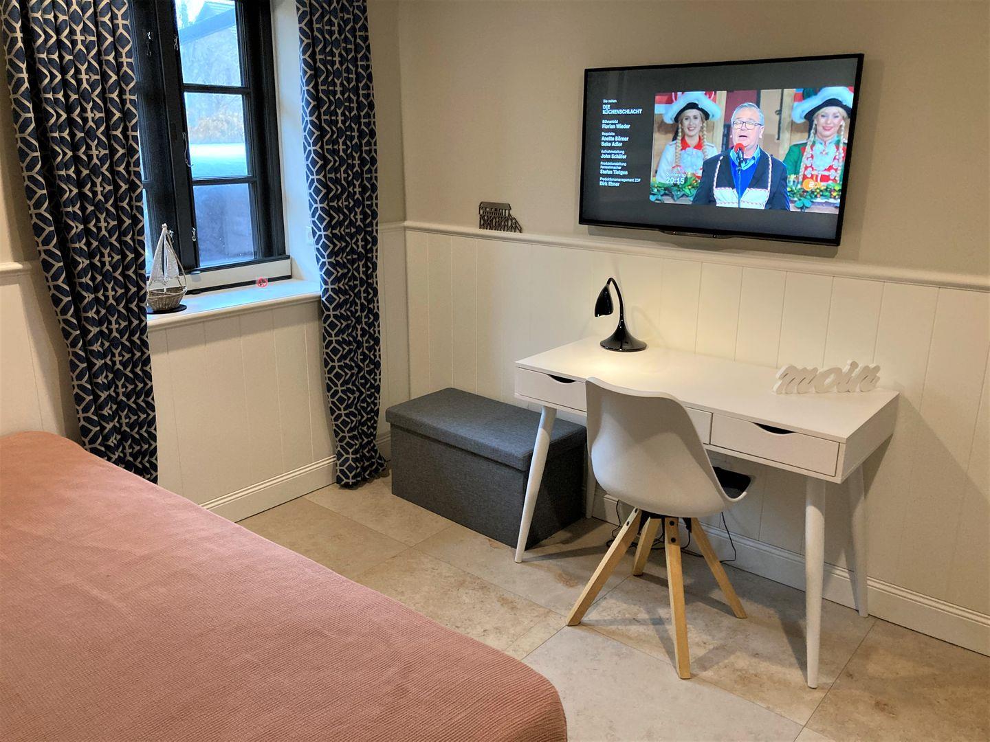 Das Schlafzimmer im Erdgeschoss ist ausgestattet mit einem komfortablen, sehr geräumigen 120x200cm Einzelbett, ein Schreibtisch sowie ein Flachbild-TV stehen zur Verfügung.