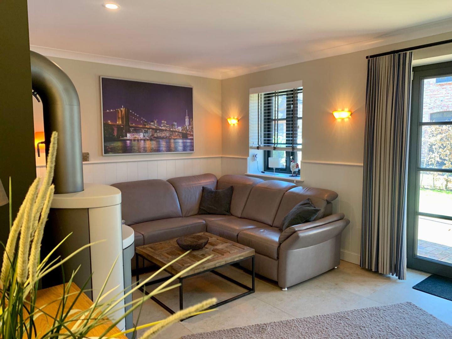 Zur Ausstattung gehört hier eine edle Ledercouch und eine sehr gemütlich eingerichtete Essecke. Für harmonisches Flair und gemütliche Stunden sorgen die liebevolle Einrichtung und der hauseigene Kaminofen.