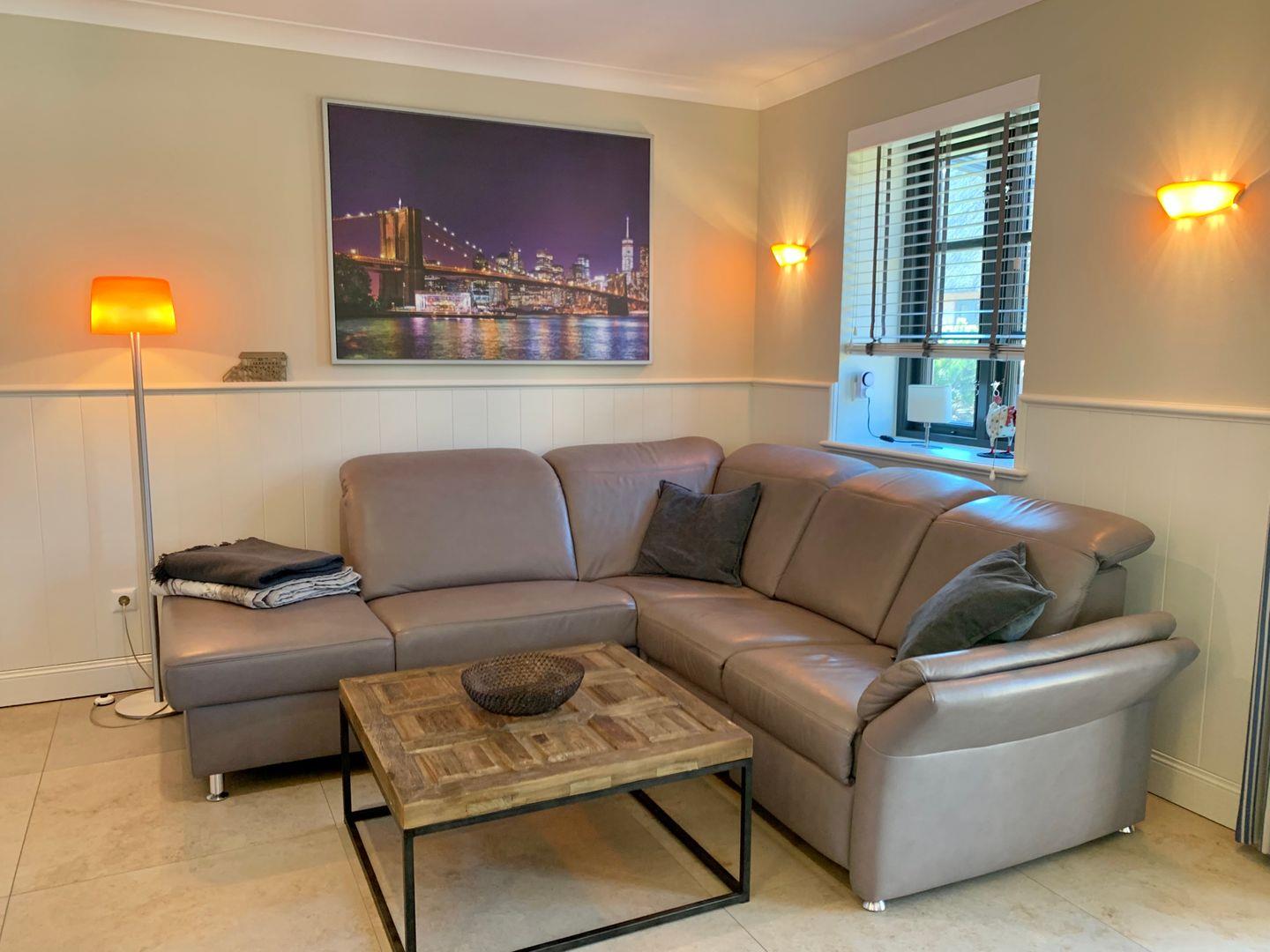 Zur edlen Doppelhaushälfte gehört eine große, möblierte Terrasse mit elektrischer Markise. In der Saison steht ein Strandkorb für entspannte Stunden im Grünen zu Verfügung.