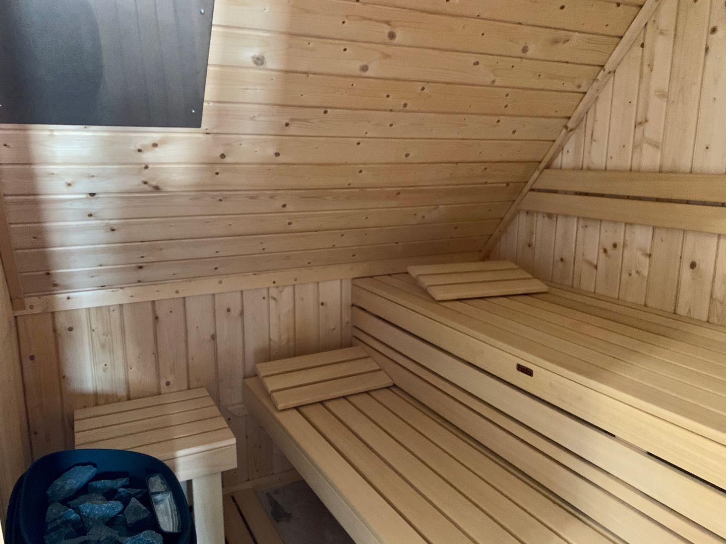 Ausgestattet mit hauseigener Sauna sowie zwei Duschbädern mit ebenerdiger Regendusche und WC, Fliegengitter zum Schieben alle Fenster (Ausnahme Heizungsraum) u. Türe geschützt, Saunahandtücher stehen kostenfrei zur Verfügung.