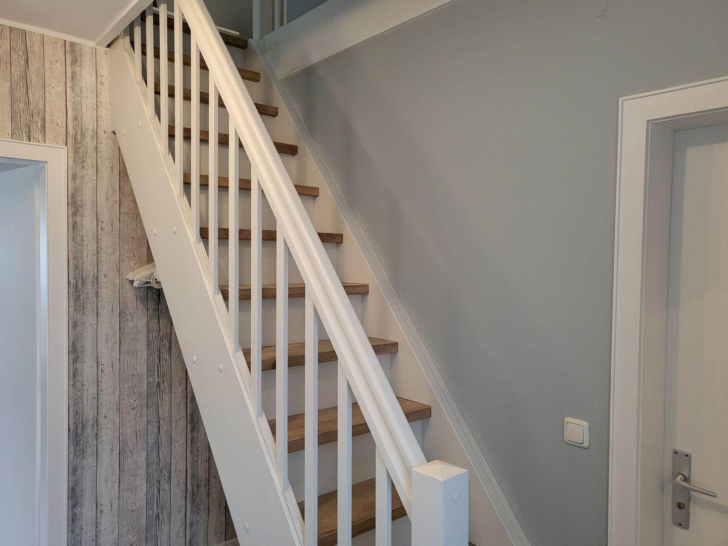 Die 63m² große Ferienwohnung für bis zu 4 Personen liegt im Obergeschoss und erstreckt sich über zwei Ebenen.